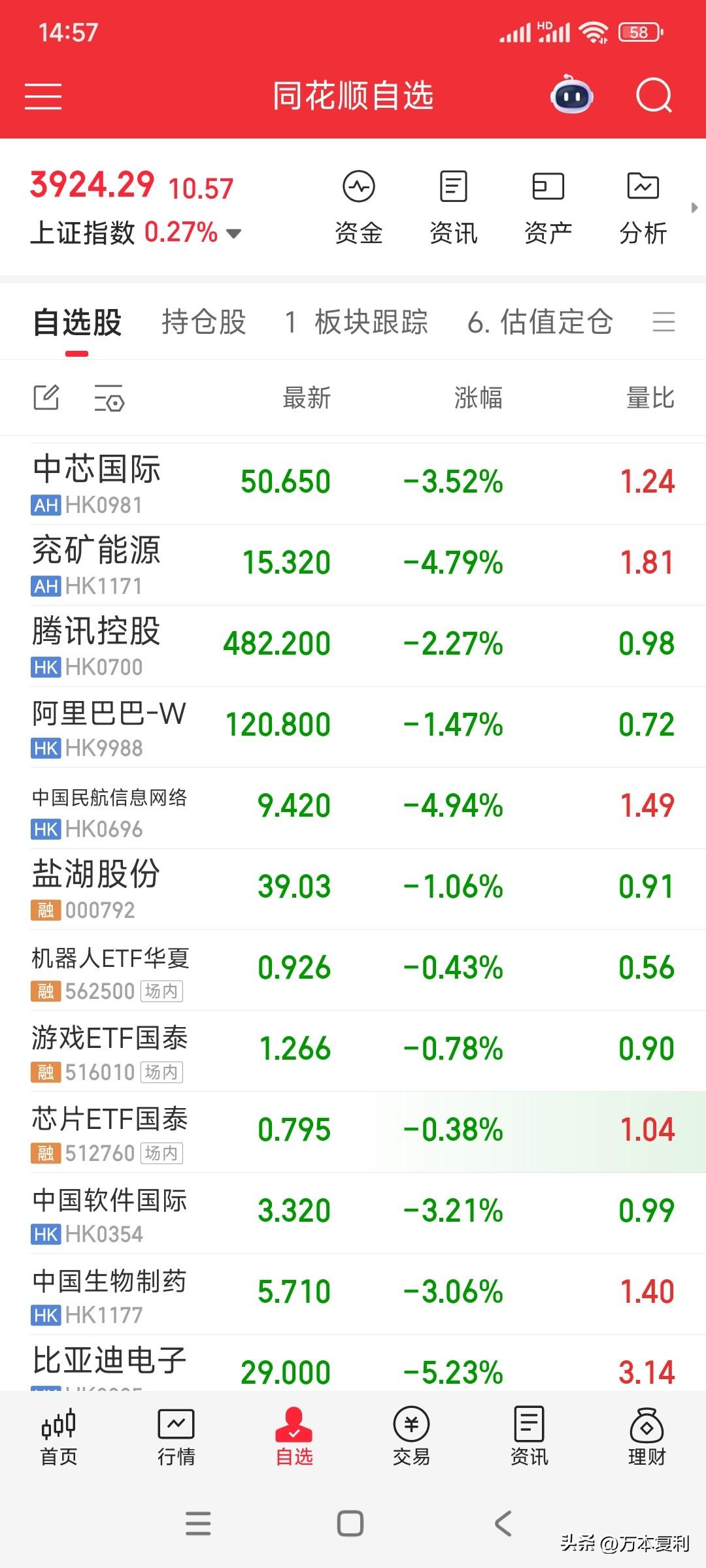 到底什么股在涨?自选股跌多涨少,活该我亏钱