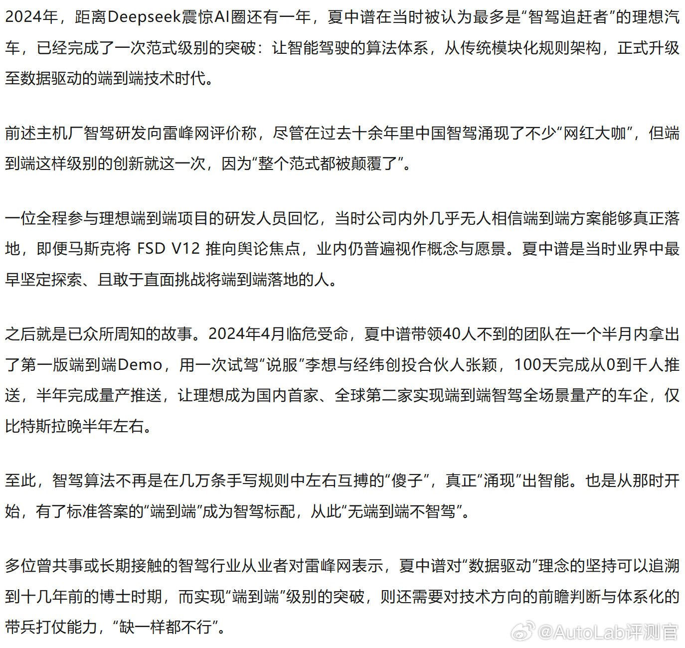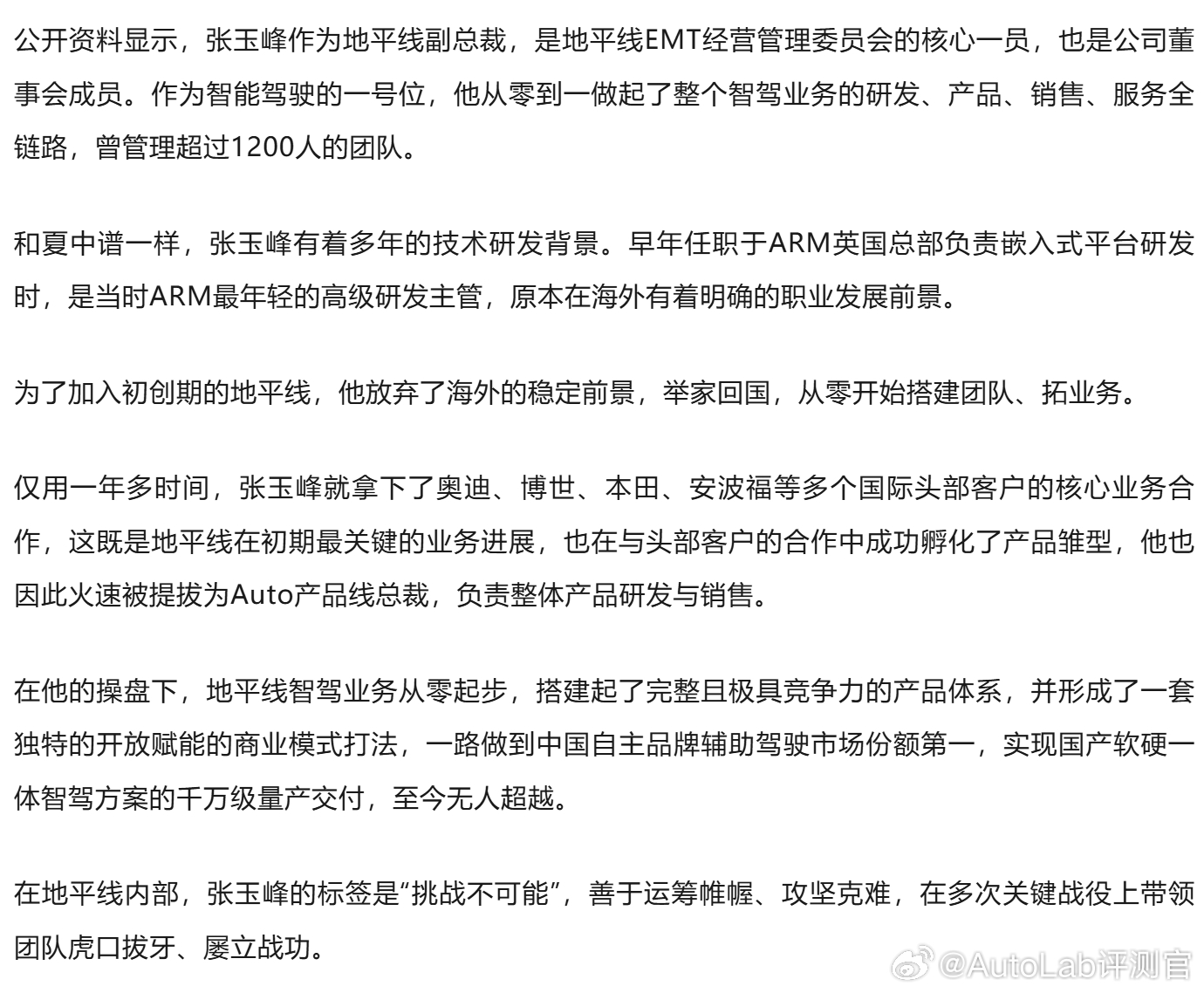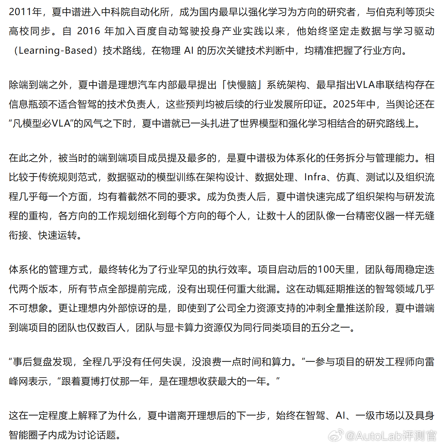 某智驾公司CTO表示,张玉峰+夏中谱的组合,是理想汽车与地平线体系走出的创业者中,战绩最扎实的两个人,“都创造过被认为是‘不可能’的奇迹”。