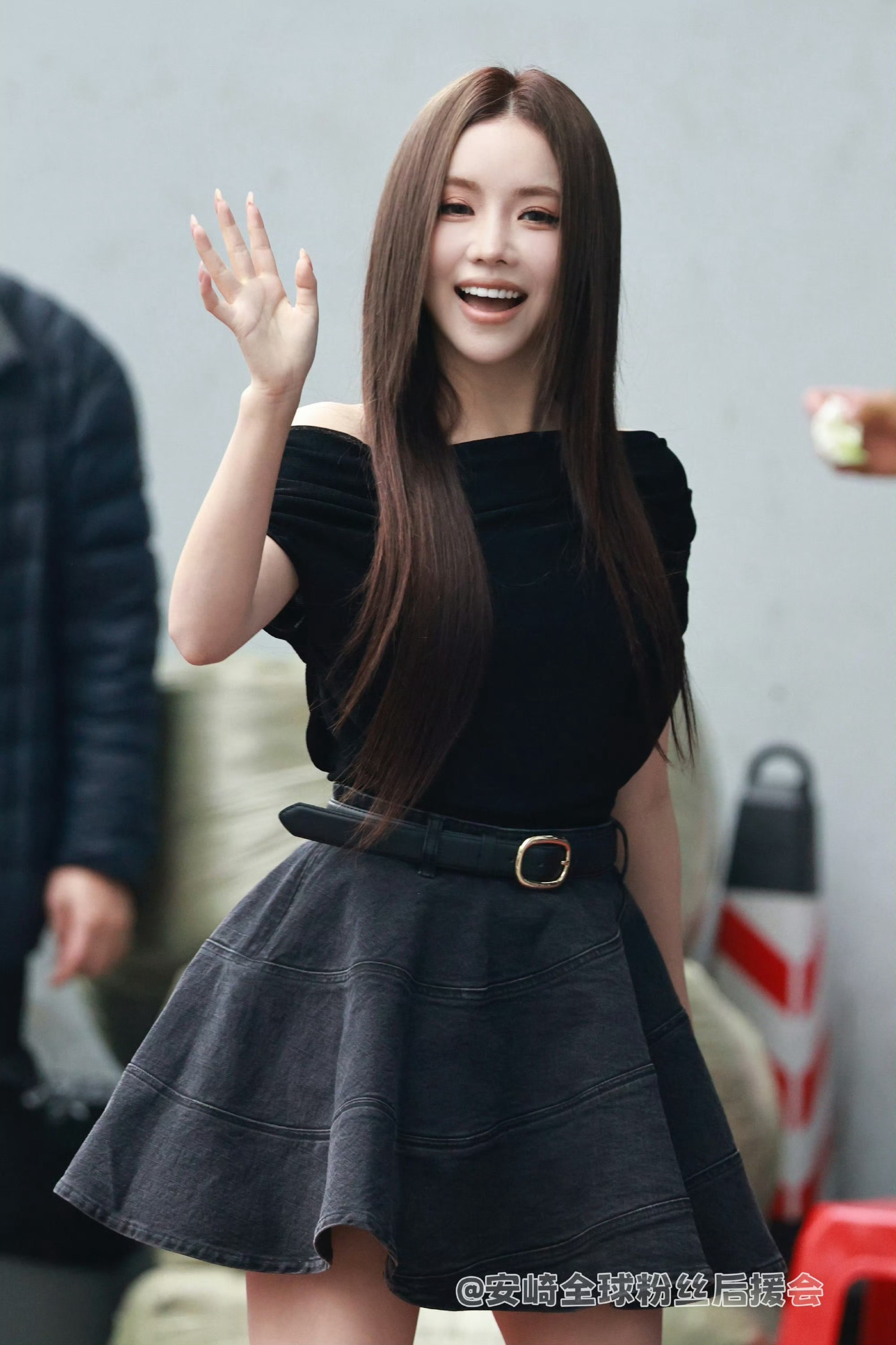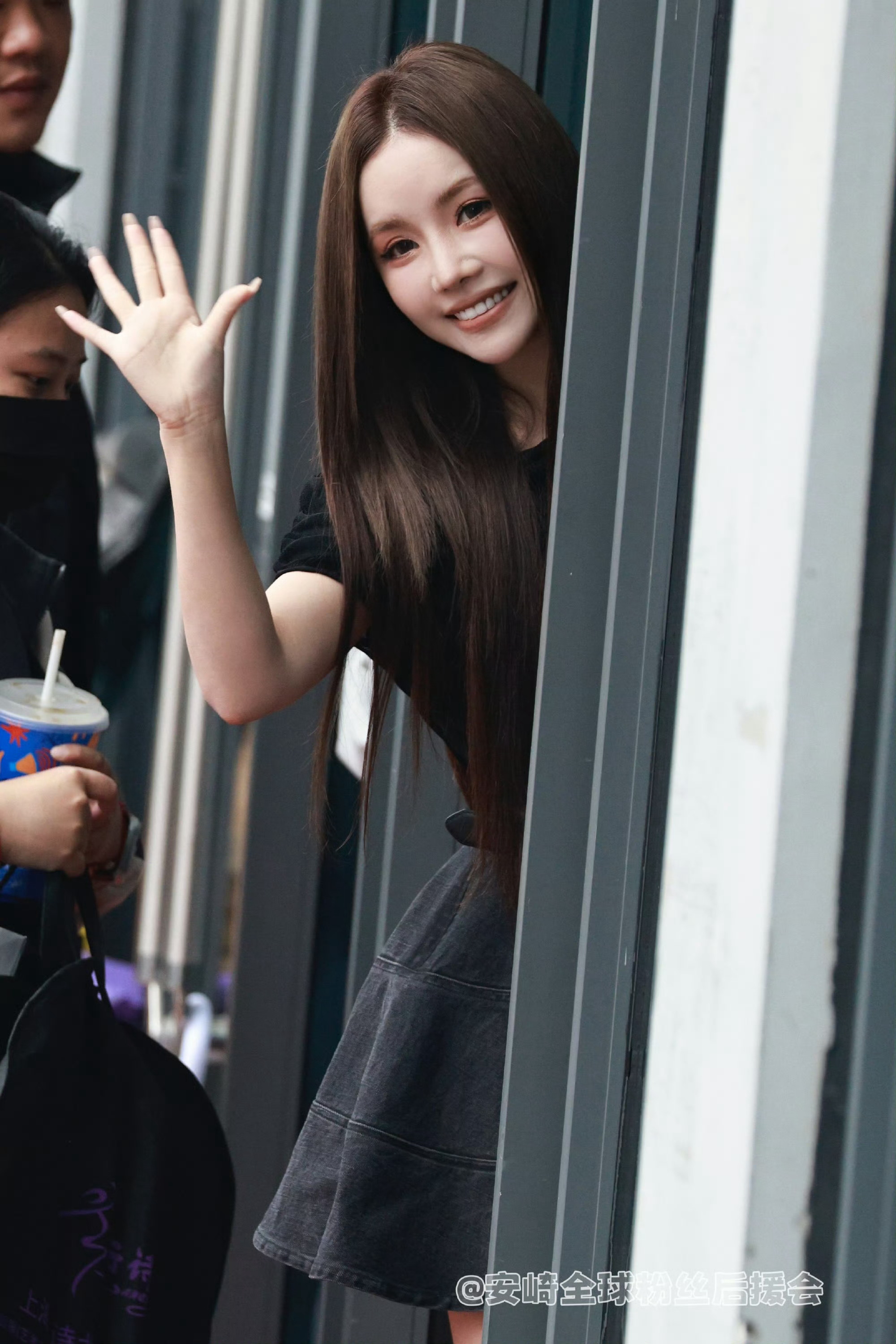 安崎浪姐上班路透 黑长直小黑裙上班啦上班啦,一直给粉丝打招呼比心太甜了吧,带着热爱乘风破浪吧,期待初舞台! 乘风2026
