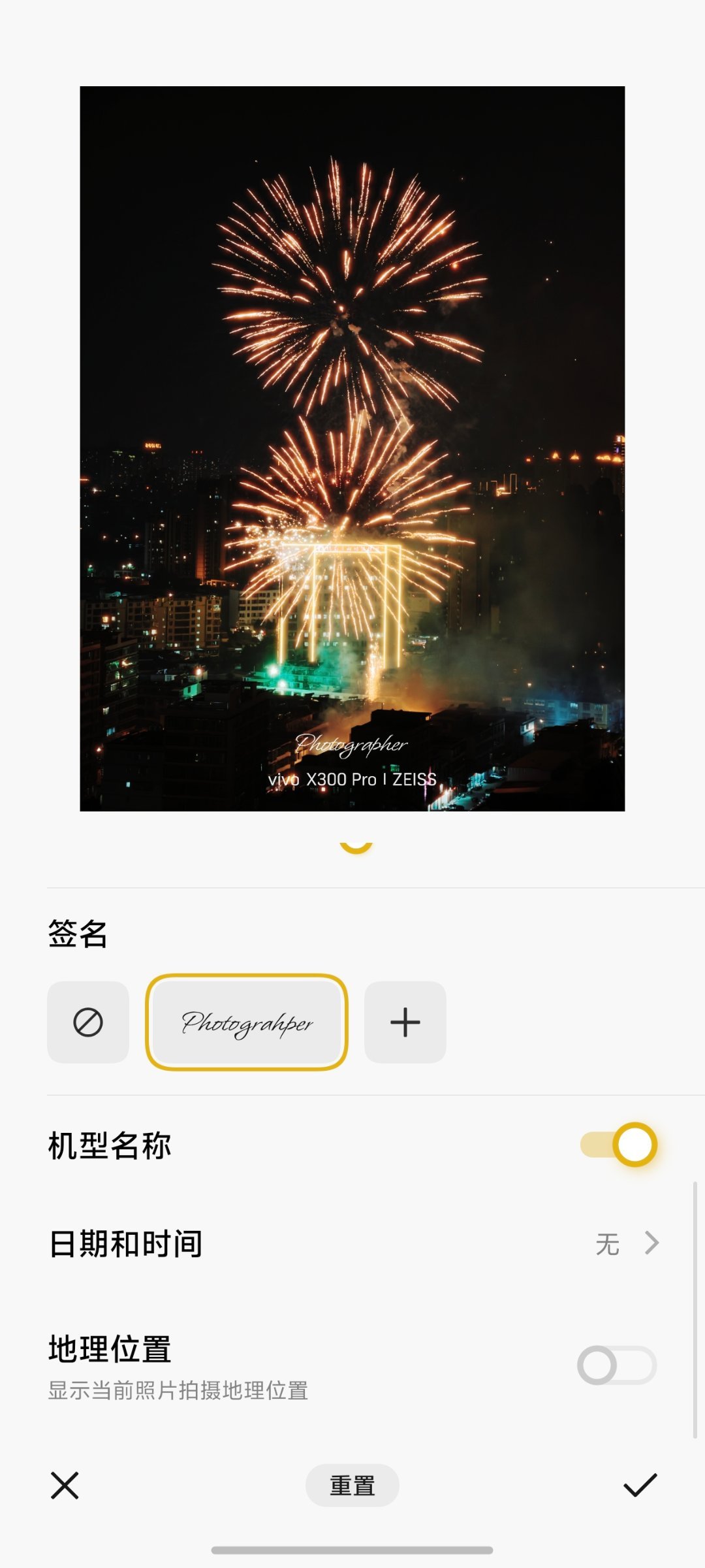 在vivo X300 Ultra专业V单 登场前,X300 Pro的相册功能也更新了。水印终于可以后期自由编辑了这下子就舒服多了。之前拍摄时加的水印和后期相册编辑的水印不相通真的好难受。听劝,给整成可以自由编辑了,太好了!