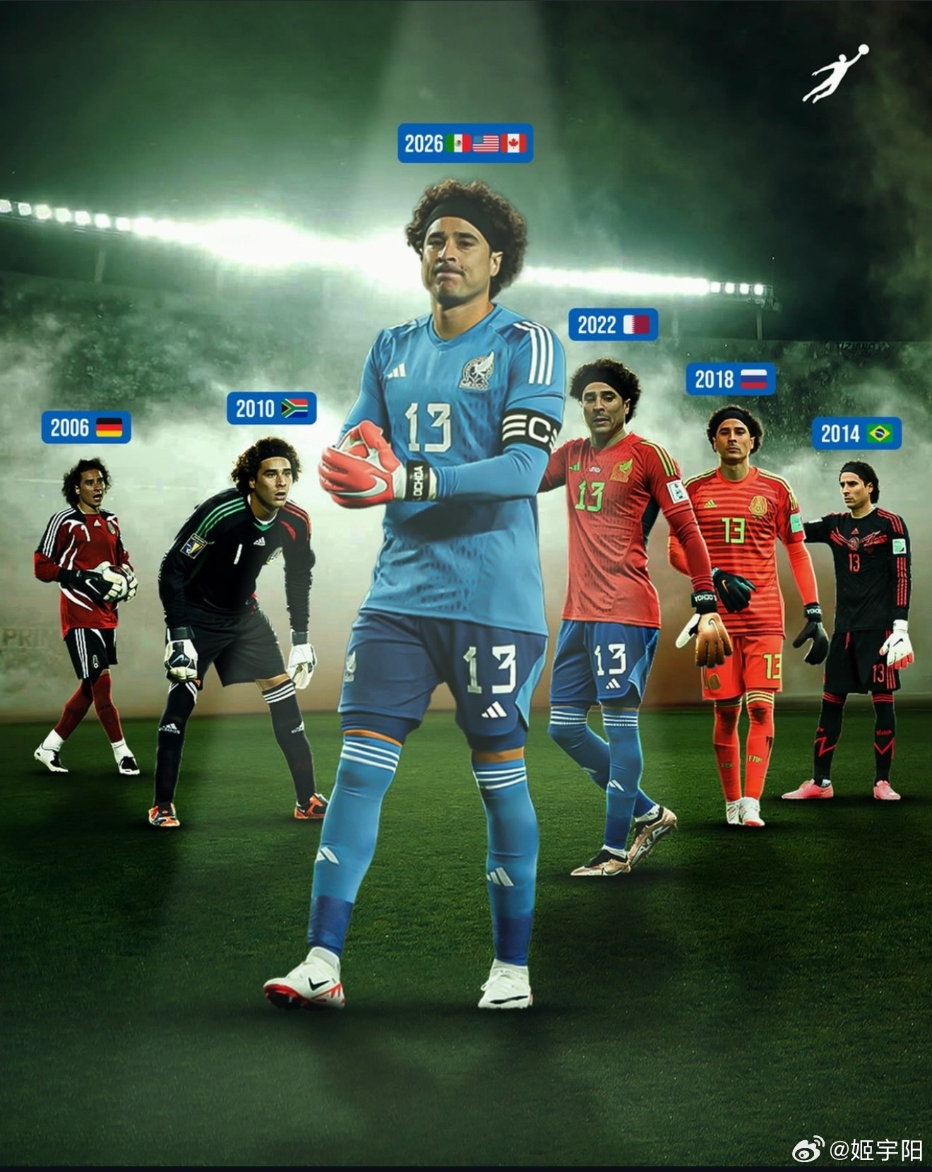 而伴随着墨西哥队主力门将路易斯·马拉贡遭遇跟腱严重受伤, 40 岁的墨西哥老门将奥乔亚也已经基本确定将会入选墨西哥队世界杯名单。这意味着他将成为第一位 6 次参加世界杯的门将。