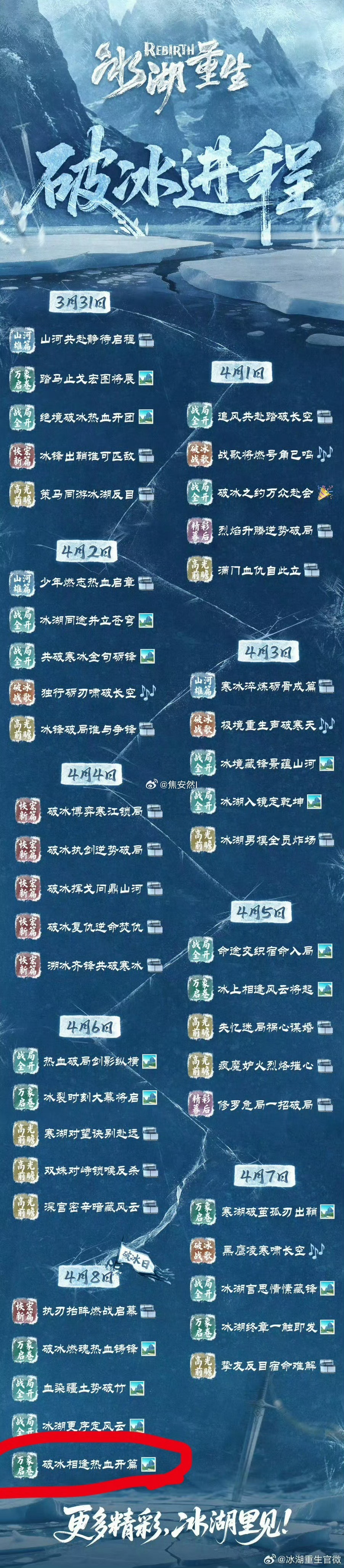 李昀锐 喜大普奔!由李昀锐主演的《冰湖重生 》终于迎来重磅定档信号,剧集官方微博发布的“破冰进程”海报中,明确标注“4月8日 破冰相逢热血开篇”,这意味着该剧大概率将于4月8日正式与观众见面,好戏将要开场!截至目前,《冰湖重生》预约量已接近150万,云包场总数更是突破10万,这份亮眼的数据背后,是广大观众对剧集内容的满满期待,更是李昀锐粉丝对其新作的全力支持,无论是普通观众还是粉丝群体,都早已做好准时追剧的准备,静待作品上线。于我而言,《冰湖重生》是列入必追清单的作品,而这份笃定的期待,核心源于演员李昀锐。他是一位极具角色塑造力的演员,演技扎实且共情力极强,只要看过他的任意一部作品,便会被他对角色的诠释所打动,很容易陷入对他作品的持续关注中,也正因如此,我对他主演的《冰湖重生》满怀信心。在一则采访中,李昀锐对饰演的诸葛玥一角有着极为清晰、透彻的认知,他精准剖析出角色的成长与转变:诸葛玥在坠入冰湖之前,性格里带着几分少年人的自我与傲娇,有着属于自身的棱角与傲气;而经历冰湖绝境、仿若重生之后,他的心境发生了翻天覆地的变化,褪去了往日的张扬,多了几分看透生命本质的淡然,周身也萦绕着历经磨难后的沧桑感,角色前后形成了鲜明且富有层次的反差。相信观众的热望、粉丝的支持,还有李昀锐对角色深度的理解,会让《冰湖重生》不负期待!