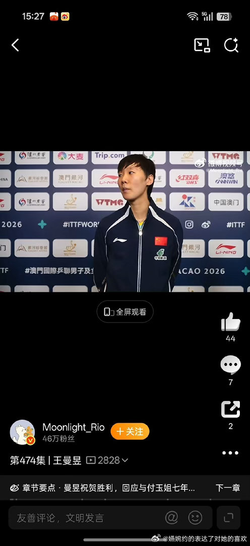 北京时间3月30日傍晚,刚刚结束了一场国际乒联澳门世界杯女单小组赛首轮比赛,世界