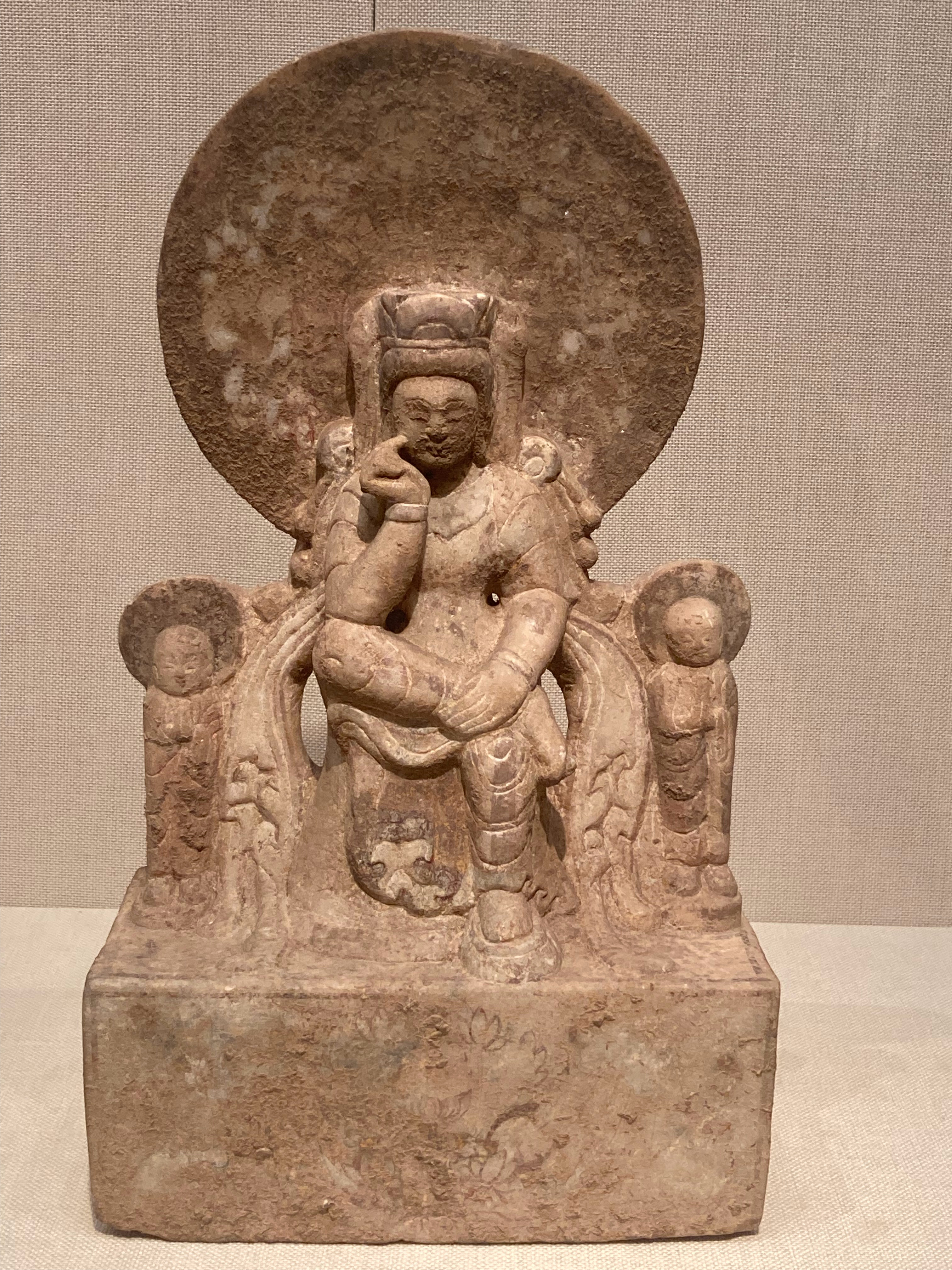 虽然这种半跏思惟菩萨像被认为诞生于犍陀罗,但在中国、韩国乃至日本也有广泛传承,其在东亚常与弥勒信仰紧密结合。这一问题值得深入探讨,在大乘佛教美术的成立与展开之中是极为重要的课题。