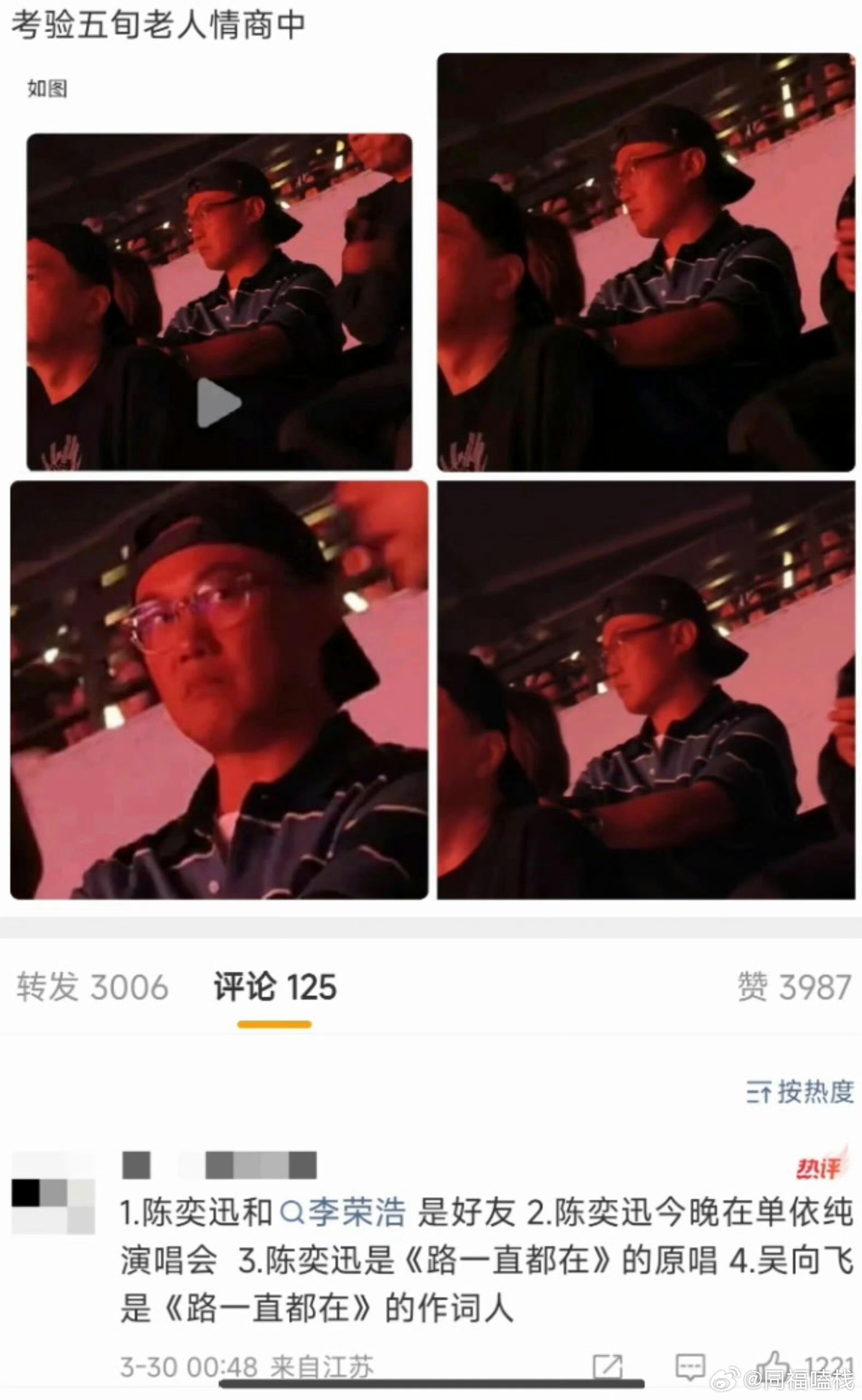 连夜给李荣浩发0.1测单删我笑晕了,架是下午吵的,演唱会是晚上去的,苦了陈奕迅在演唱会上表演情商课教学,演唱会结束怕不是连夜给李荣浩发0.1测单删