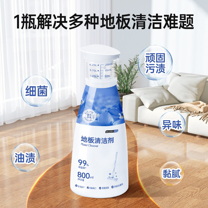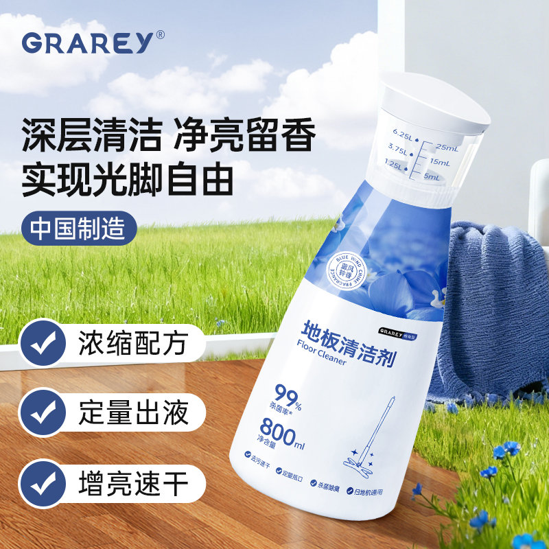 自从用了GRAREY格瑞亚地板清洁剂,孩子想怎么在地上爬,都安心。一瓶=清洁剂+抑菌剂+地板护理剂+空气清新剂,杀菌率高达99%,拖一次从根源解决污垢、灰尘、细菌残留问题。速干,不留水渍,只需拖一遍就能干净到反光,自带蓝风铃香味,拖完简直是给地板做SPA。这个好物闭眼入 【GRAREY格瑞亚-地板清洁剂】超浓缩配方强力去污强力去污一瓶=清洁剂+抑菌剂+地板护理剂+