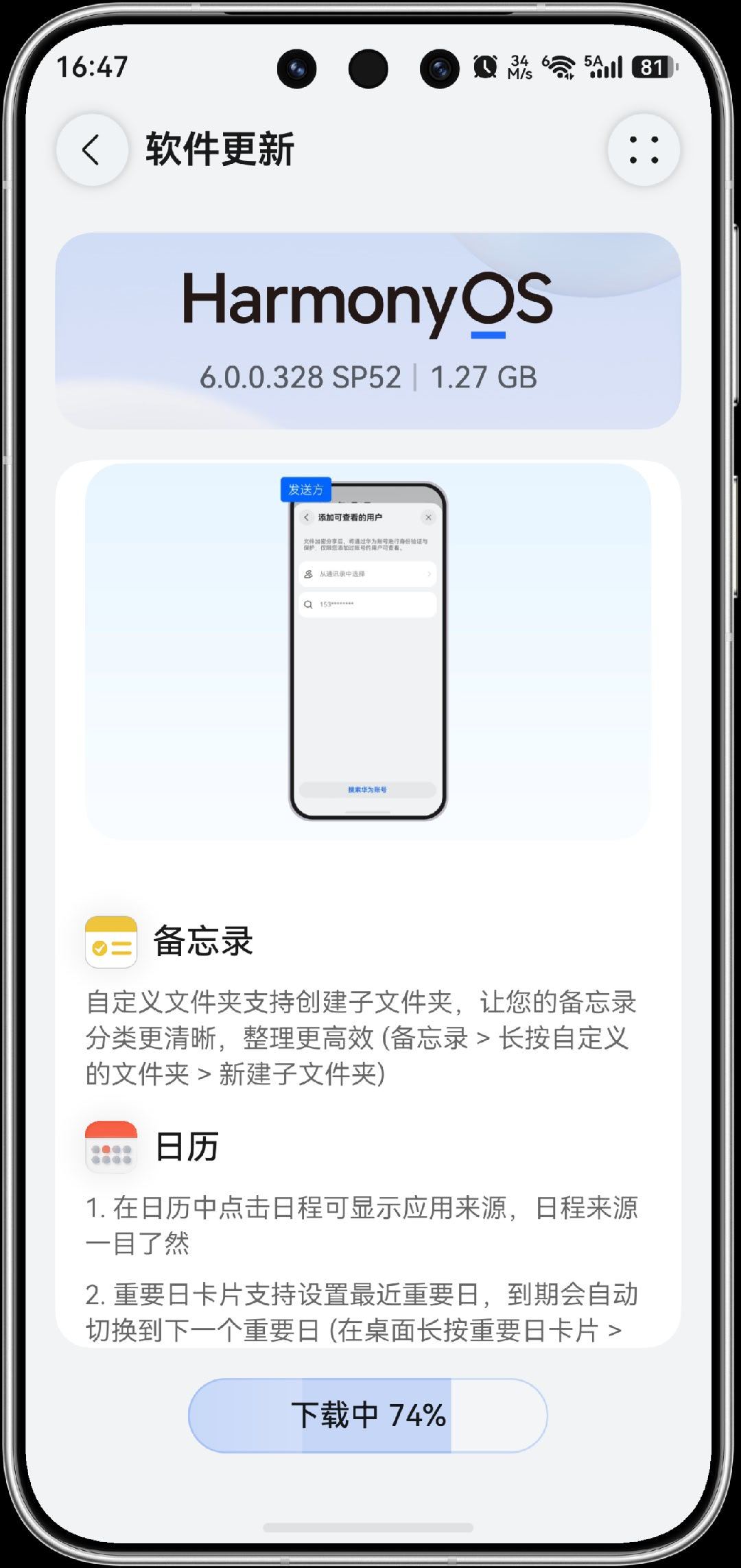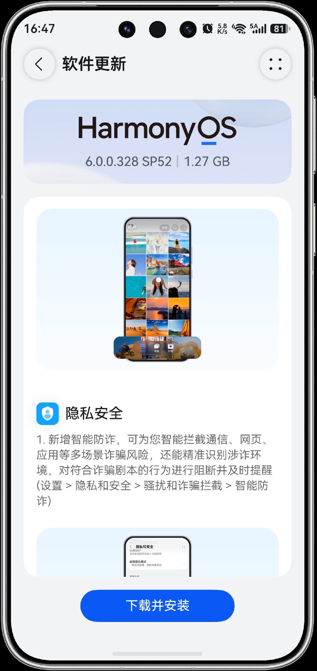 Mate 80 Pro的HarmonyOS 6.0.0.328 SP52版本更新走起。全新的沉浸光感特效、智能防诈、加密分享限时查看……细节进一步优化,功能也越来越丰富了。更起来~鸿蒙越用越香
