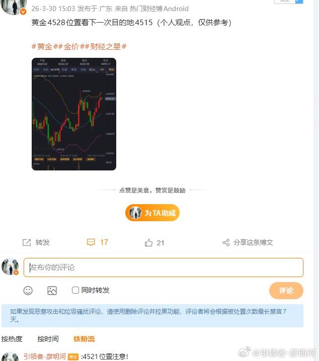 黄金震荡上行,我们本次4528空给到4516位置距离我们目标就那么一个点,不过也吃下120点的空间,现在行以4515附近为小时线支撑开始继续往上压,什么时候可以去做多,只能看4550位置是否能站上,站不了空站上去就多!