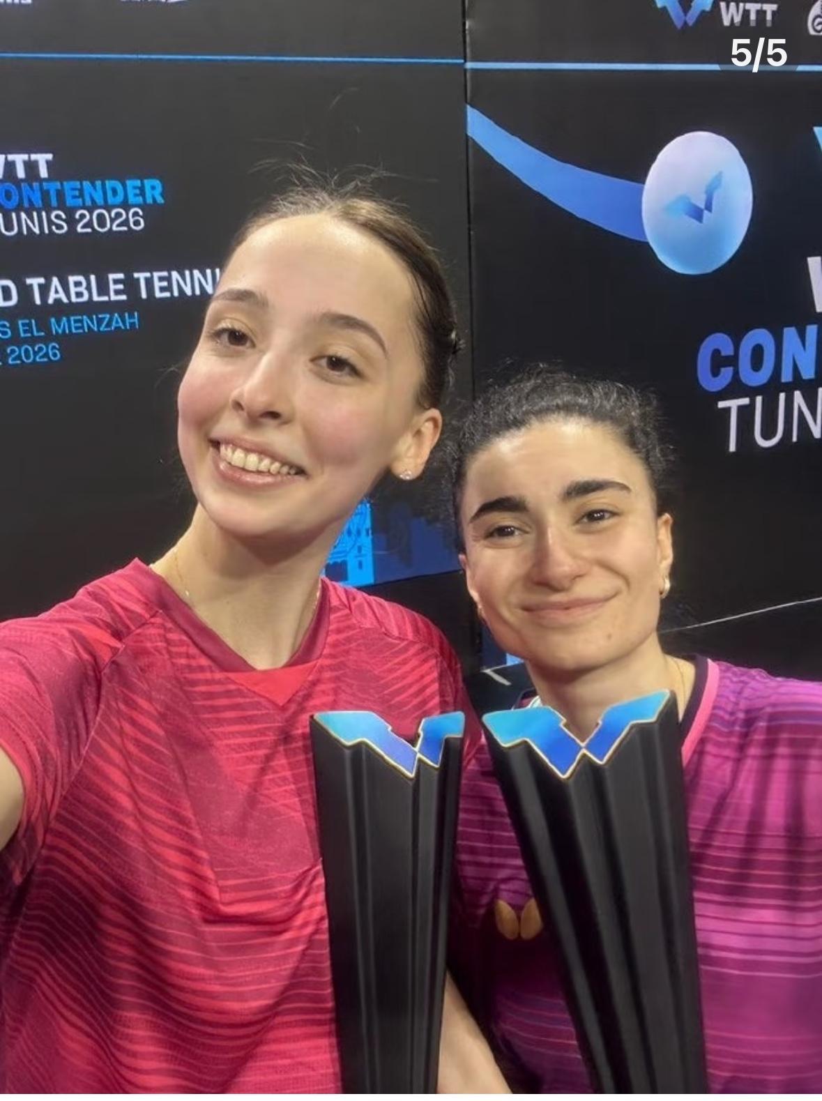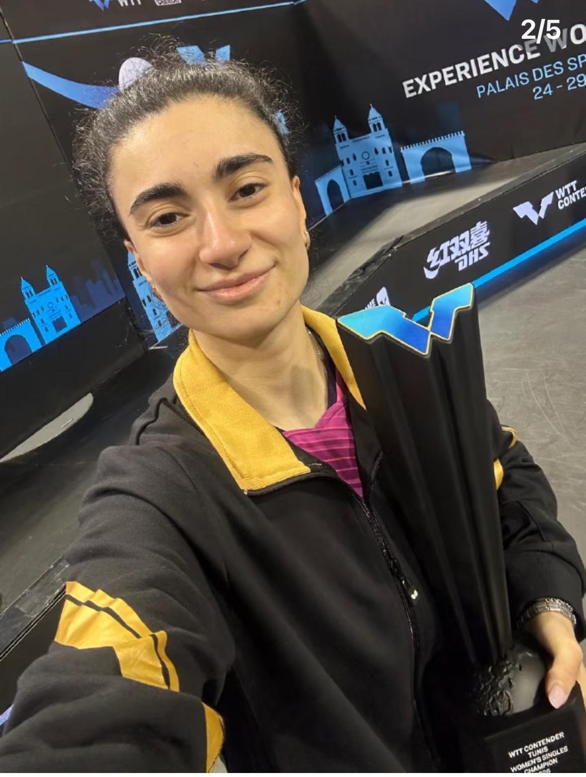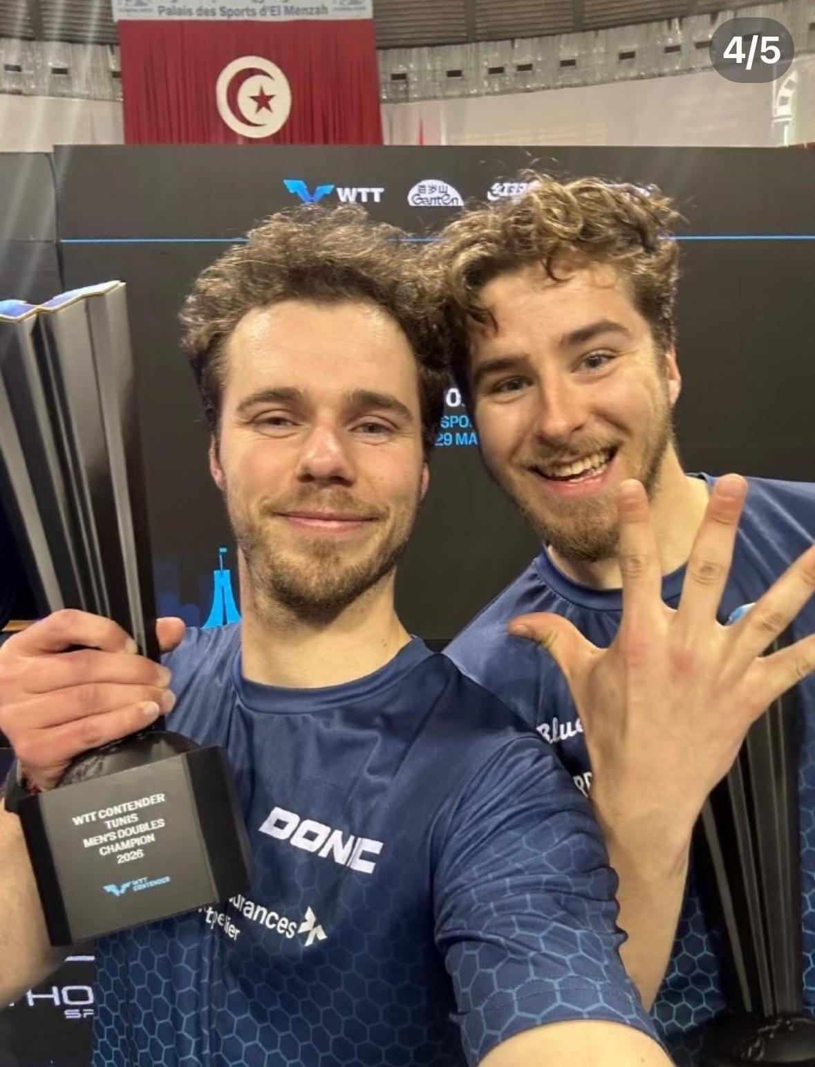 2026WTT常规挑战赛突尼斯站 冠军🏆们的自拍——科顿获男单冠军🏆! 科顿4:1筱塚大登,夺得男单冠军! 阿布拉米安击败朱芊曦,夺得女单冠军🏆! 罗泊勒斯/肖瑶茜夺得混双冠军! 法乒小黄鞋多尔/布尔拉萨夺得男双冠军🏆! 阿布拉米安与搭档搭档女双冠军! 朱芊曦还是有些遗憾, 国乒没有参赛, 夺冠的机会,这就这么错过, 科顿是法乒的后起之秀, 将来一定也会成为国乒的强劲对手!