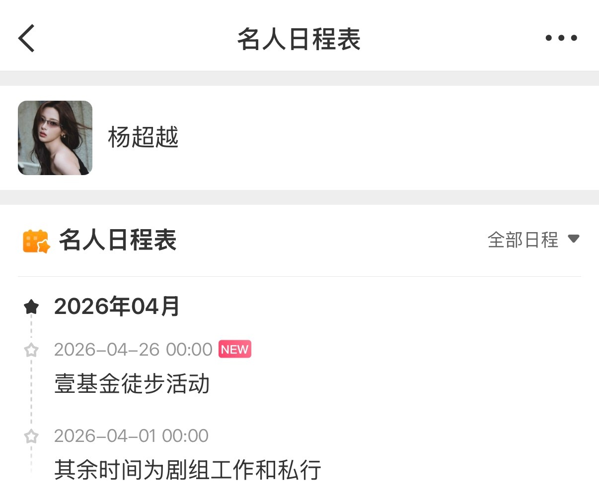 杨超越四月行程