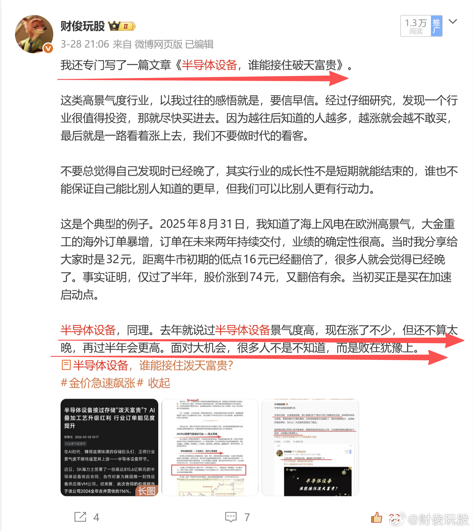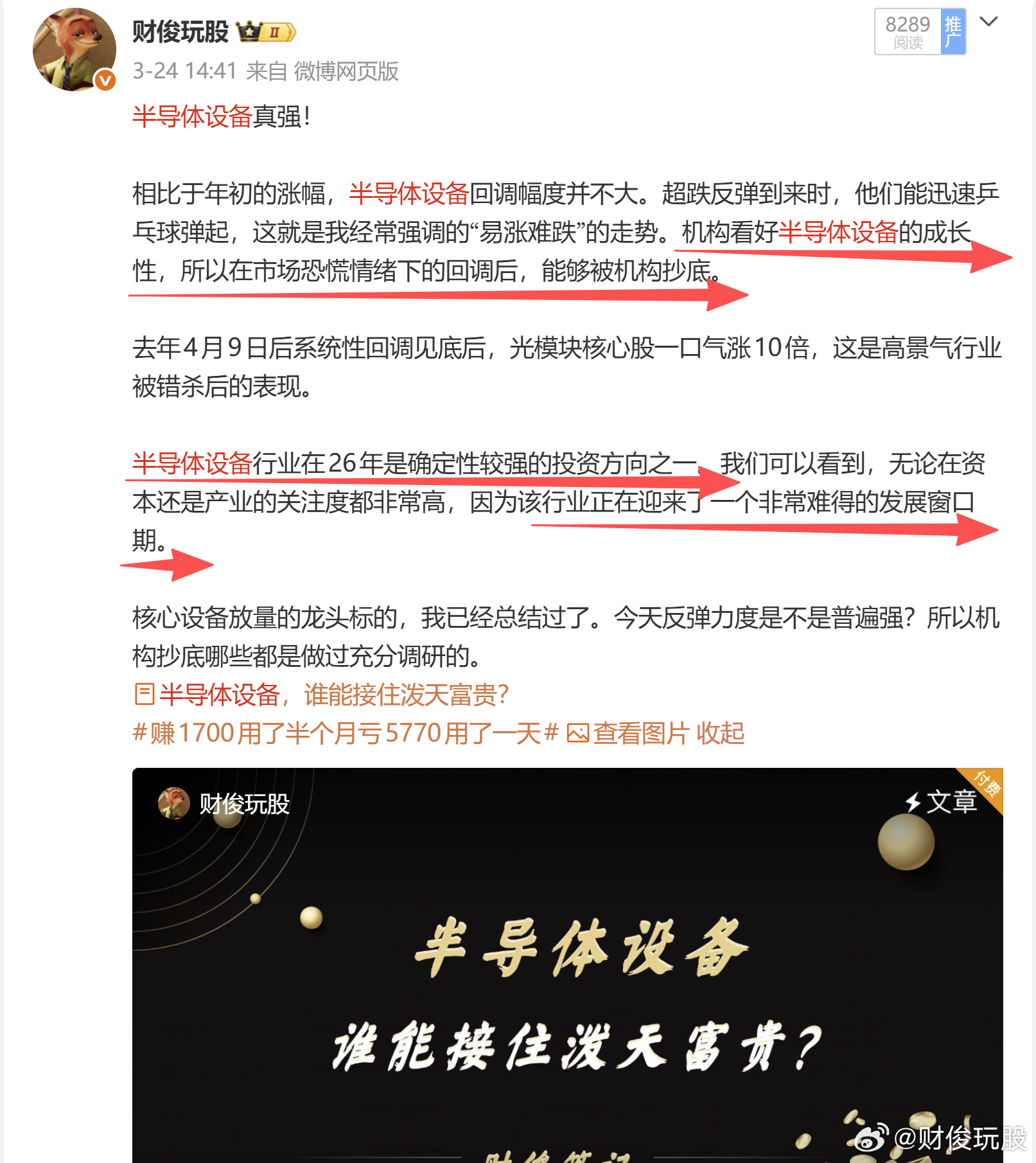 经过两个月的普跌,那些业绩增速显著,订单确定性兑现的行业,再次显示出投资价值。我最近三番五次的说到【半导体设备】行业需要重点关注,专属文章中分享给大家的公司今天多只大涨,有两个马上快创新高了。