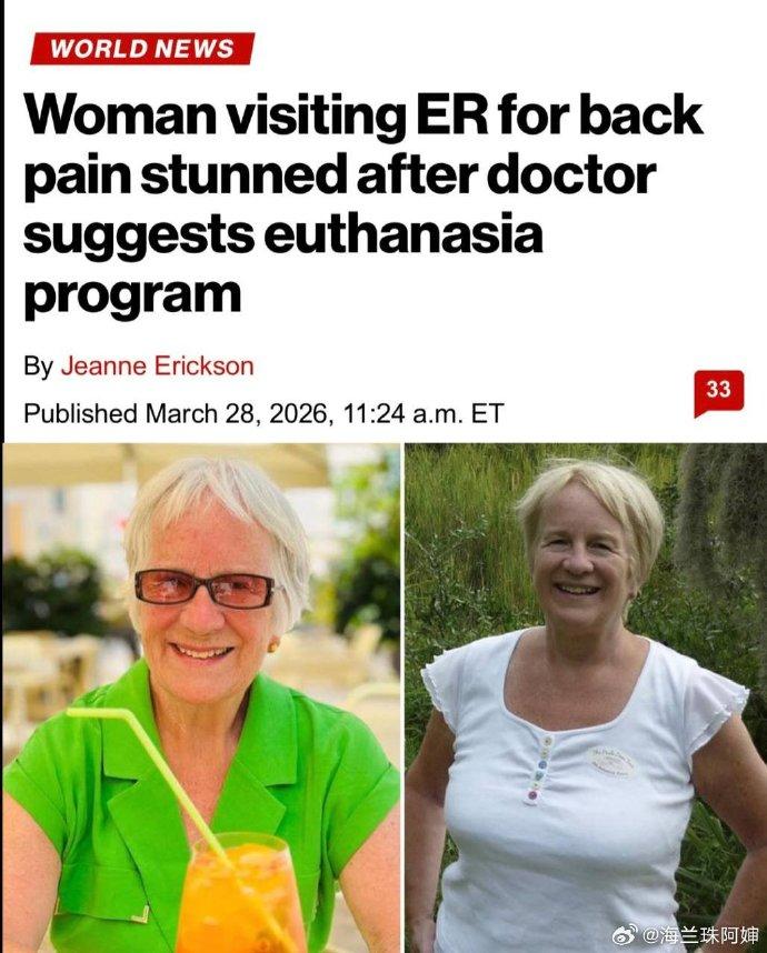 在西方,安乐死真的有可能成为合法谋杀的手段。 加麻大84岁老太太只是去医院看了一下背痛的问题,结果就被医生建议安乐死。 他们出清人口计划就这样迫不及待吗? 要是换作在中国,哪个医生敢这么说,可能他的行医资格证都会被吊销。 点右上角关注我,我们一起去看这个魔幻的世界