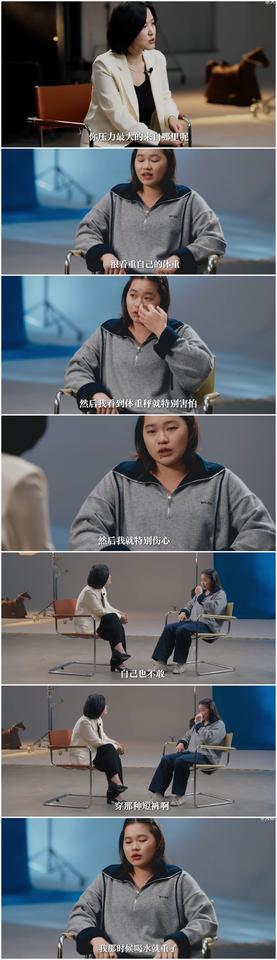 全红婵采访途中谈及此事, 泪流不止, 不得不中断采访。 全红婵强调当下最大的压力 就是来自于自己。 她当下很看重自己的体重, 全网都在热议这个事情, 导致她压力很大。 于是她看到体重秤就特别害怕, 哭着说, 她也不敢穿短裤与裙子, 只能穿长袖长裤作为遮掩。 她为了减肥, 每天只吃一顿, 但是还是无法减下来, 喝水都会发胖。 但是在镜头前她总是 强装开心, 不想把负能量传递给喜欢她的人。 就算面对网友恶评, 她都强调对方可能工作压力大, 随便评价的, 她很理解对方的难处, 知道对方是无心为之的。 哎呀, 难怪那么多人喜欢她, 不光是她取得奥运金牌, 更多的是她总是跟大家展现阳光的一面, 真诚和勇敢。