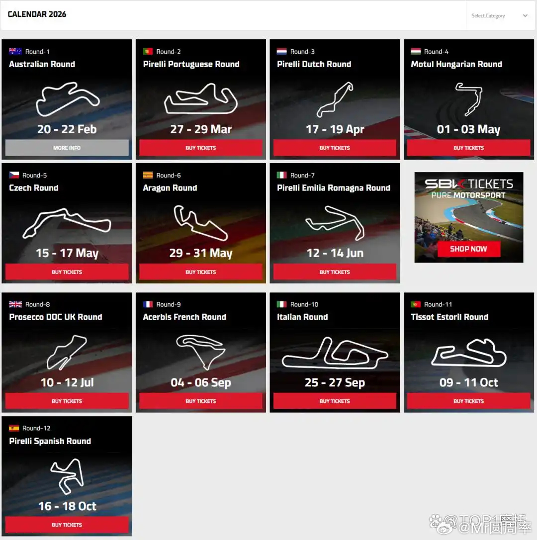 WSBK2026年的比赛赛程。下一次正赛是4月18-19日。图片来源于百度TOP