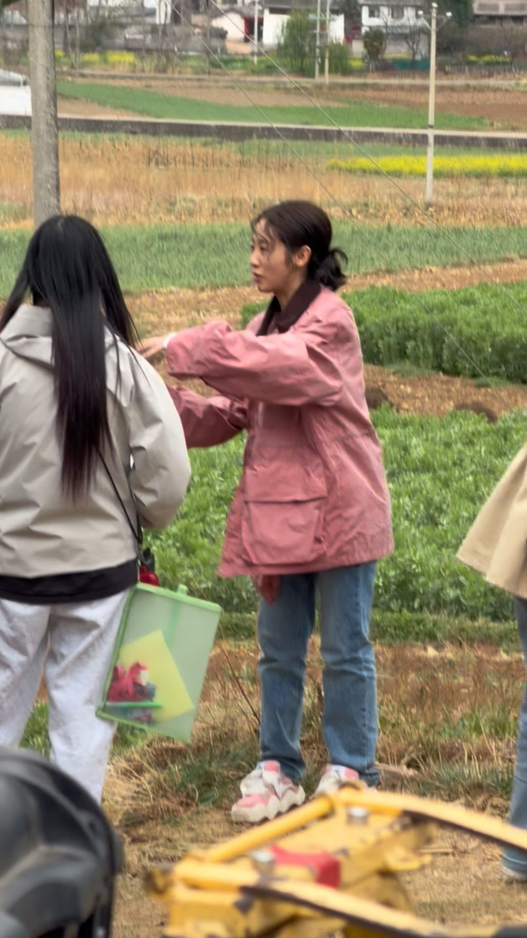 邢菲《我乐个神落村》路透来了,造型好写实啊,衣服一围就开始踢土块,活人感满满的张