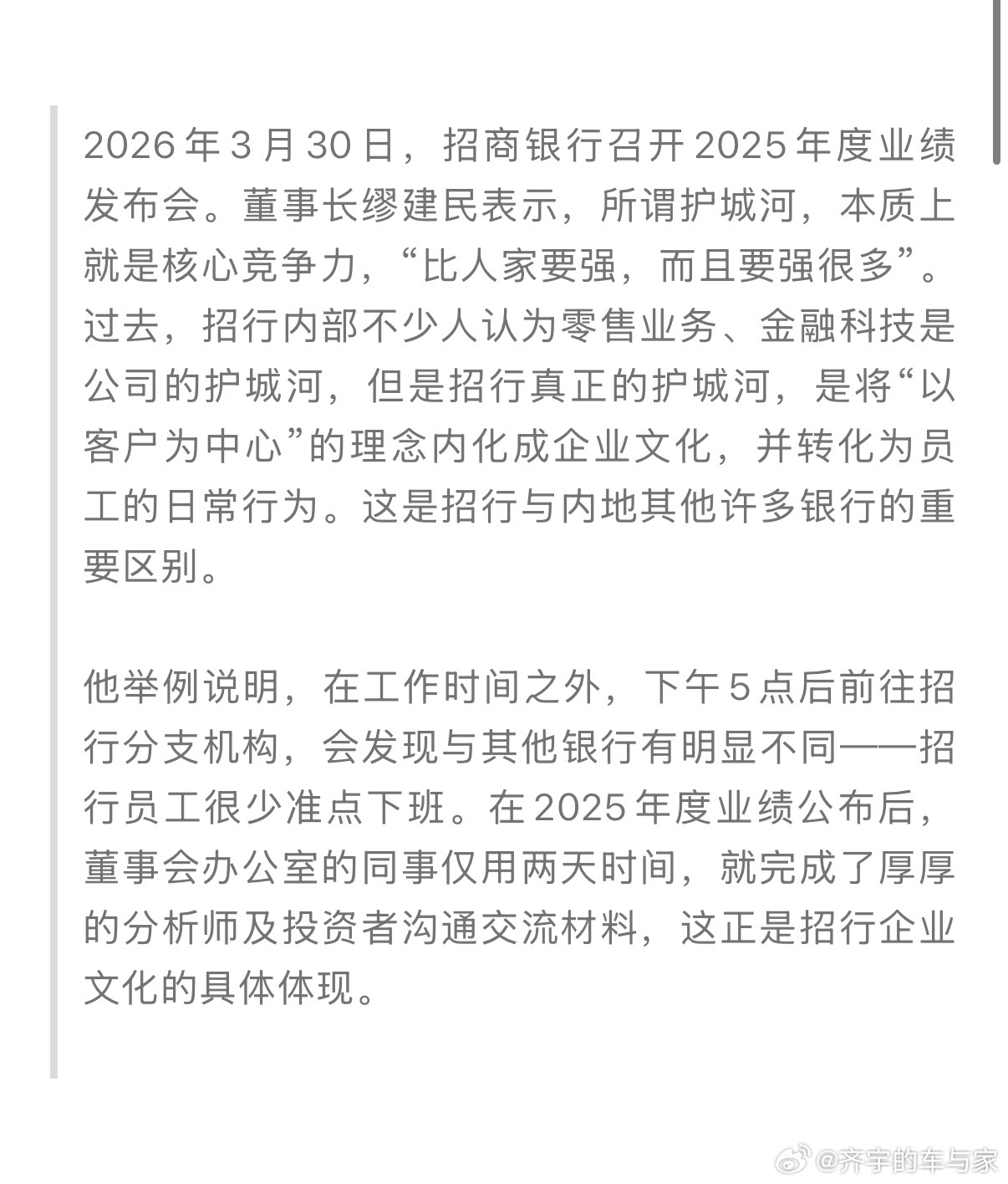 what?我能理解他说的什么意思,就是向用户阐述他们很关注用户的体验,但是在这个舆论环境中说出来,可不太吃香啊招商银行董事长称员工很少准时下班