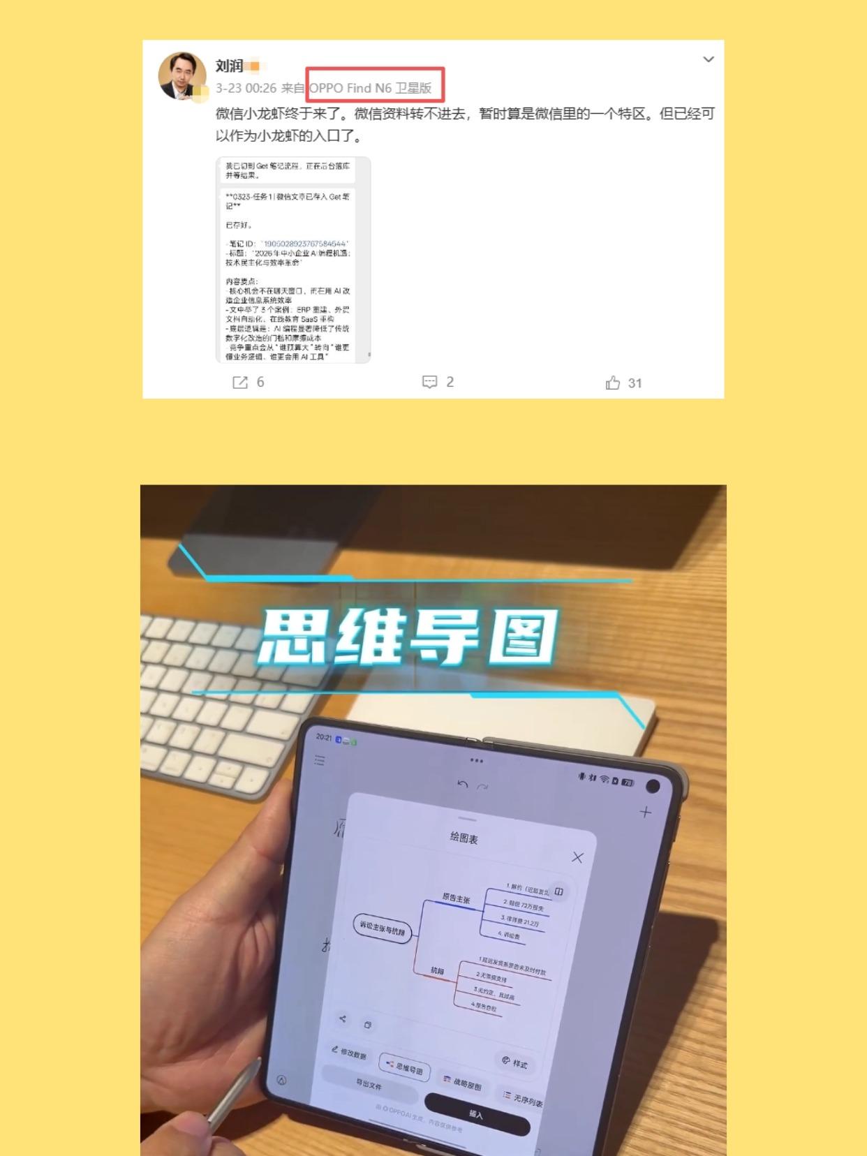 月入百万的大佬私底下都是在干嘛的? 一直以为大佬的标配是就是豪车和名表,然后平时运动就是打打高尔夫什么的,然后跟圈子里的人谈笑风生,可能跟我们普通人最接近的就是手机了,毕竟3万亿美元的苹果公司,CEO库克也是用的iPhone(手动狗头)。 还有就是最近刷到了著名咨询顾问刘润和李叔凡律师,最近都在用OPPO Find N6,想不到这些大佬居然是用折叠屏,去看了一下才发现,现在折叠屏不是我刻板印象中的大号手机了。 比如说李叔凡律师用折叠屏是真的能提高办公效率的,平时出差可以直接用Find N6远程控制Mac处理文件,还有AI手写笔也能提高效率,只能说大佬用这省下的时间成本,估计够买几百台手机了吧?