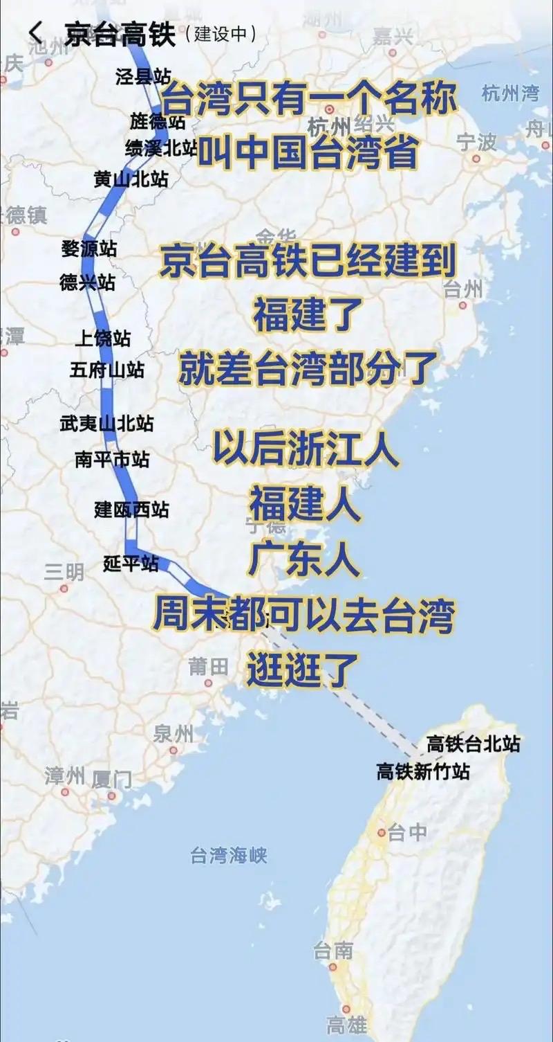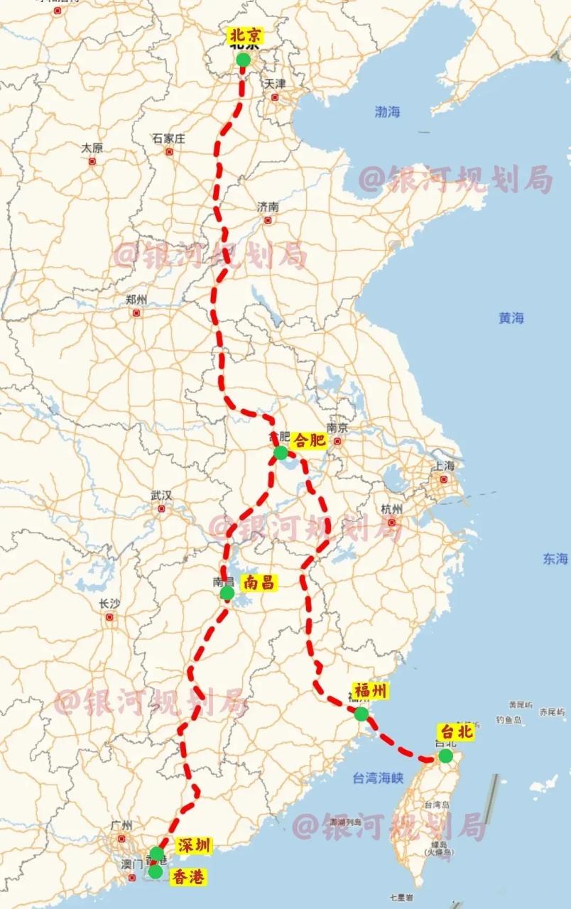 京港台高铁 京港台高铁是国家“八纵八横”高速铁路网中的重要纵向通道,规划连接北京、香港与台北,目前大陆段正加速建设,但跨越台湾海峡部分仍处于远期规划阶段。 这条通道分为两大部分:京港高铁(北京至香港)和京台高铁(北京至台北)。其中,京港高铁由多段组成,包括京雄商高铁、商合高铁、合安九高铁、昌九高铁、赣深高铁和广深港高铁等。截至2026年3月,大部分路段已通车,仅剩北京至雄安段(丰雄段)和阜阳至黄冈段(阜黄段)尚未建成。据港媒报道,京港高铁有望今年全线通车,南起香港西九龙站,途经多个城市最终到北京,北京至商丘段正线铺轨完成且与既有线路互通,预计9月开通。 至于通往台北的支线,规划从合肥经福州延伸至台北,大陆侧已修至福建平潭,且平潭站预留了对接接口。 不过跨越台湾海峡那部分还在远期规划,希望能早日实现。到时候坐着高铁去台北,感受宝岛的风光,那画面简直不要太美!