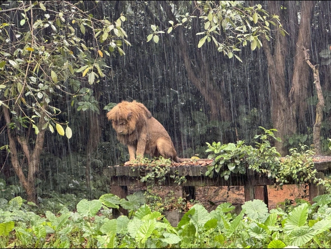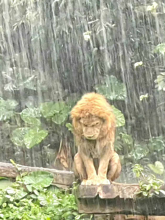 被长隆动物园淋雨狮子刷屏了狮子淋成狗了一种狮恋的感觉。