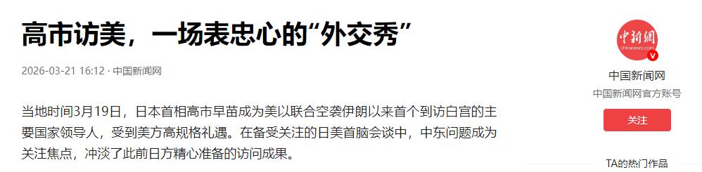 现在可怕的事情发生了,美国可能真的想要日本打响第一枪 其实很多人都忽视了一个细节,就是高市早苗在 3 月 18 号专程飞到美国华盛顿,3 月 19 号跟美国总统特朗普举行了会谈。 这场会谈原本规划的时长只有短短半小时,是一场常规的短时间会晤,可实际交流中,双方硬生生把会谈延长到了一个半小时,连原定的工作午餐都直接取消,闭门交流的具体细节外界很难全盘摸清,但会谈结束后日本的一系列动作,已经把美国怂恿日本、日本甘愿充当棋子的危险博弈,明明白白摆在了台面上。 在高市早苗赴美会谈之前,日本在对华关系上虽然一直跟着美国的步调,时不时搞一些小动作,在东海、台海等涉及中国核心利益的问题上搅局,但是始终留着几分余地,不敢明目张胆地进行极端挑衅。 日本清楚自身与中国在地缘、经济上的深度联系,也知晓中国捍卫国家利益的坚定决心和强大实力,不敢轻易突破底线、把双边关系推向彻底破裂的边缘。 可这次白宫会晤之后,日本的态度发生了明显转变,之前的克制和顾忌彻底消失,对华挑衅变得更加直白、更加肆无忌惮,一系列危险操作接连出现,完全是一副有恃无恐的姿态,这背后必然是美国给日本许下了承诺、提供了撑腰,让日本觉得有美国做后盾,就可以肆意触碰中国的红线。 美国之所以处心积虑想让日本打响第一枪,核心原因很简单,美国自身不想直接和中国发生正面冲突,不愿承担开战带来的巨大代价、国际舆论压力以及战略风险。 一直以来,美国都在推行代理人挑衅的策略,而日本就是美国在亚太地区选中的最核心、最听话的棋子。 近些年美国不断放松对日本的军事束缚,推动日本修改安保政策、大幅扩军备战,还向日本出售战斧巡航导弹等进攻性武器,一步步强化日美军事同盟的实战化部署,就是要把日本彻底推到对抗中国的最前沿。 美国的算计十分清晰,就是让日本主动去试探中国的反应、触碰中国的主权底线,最好能由日本率先挑起冲突、打响第一枪,这样美国就能以 “保护盟友” 为借口,顺势介入地区冲突,把战火引向亚太,自己则躲在后方提供支援、操控局势,既不用直接付出伤亡代价,又能达到遏制中国发展、维护自身全球霸权的目的。 日本右翼势力恰好迎合了美国的这一图谋,高市早苗作为日本右翼的代表人物,一直致力于推动日本摆脱战后体制、大力发展军事力量,在涉台、涉海等问题上不断发表错误言论,始终抱着敌视中国的态度。 有了美国的暗中支持和怂恿,日本右翼更加有恃无恐,在对华政策上不断突破底线,把整个日本绑上美国的遏华战车,完全不顾及日本自身的安全与发展利益,也无视亚太地区国家期盼和平稳定的共同心愿。 高市早苗访美回国后,日本立刻在 2026 版外交蓝皮书中,将中日关系从 “最重要的双边关系之一” 降级为 “重要邻国”,还在台海问题上加大介入力度,甚至出现人员闯入中国外交机构的恶劣事件,这些行为都是在不断升级对华挑衅,都是在美国的授意下逐步推进的,目的就是不断制造摩擦、试探底线,最终为日本打响第一枪铺路。 面对美国的险恶算计和日本的铤而走险,中国的立场始终清晰且坚定。中国一直坚持和平发展,致力于维护亚太地区的和平稳定,始终希望通过对话协商解决分歧,但这绝不意味着中国会容忍任何国家侵犯国家主权、安全、发展利益。 中国的红线绝不容触碰,不管是美国的暗中怂恿,还是日本的盲目挑衅,都不可能动摇中国捍卫国家领土主权和核心利益的决心。中国军队始终保持高度戒备状态,全时待战、随时能战,拥有足够的能力和底气,挫败任何分裂国家、侵犯主权的行径。 美国想让日本充当炮灰、打响对华第一枪的图谋,注定不会得逞。日本如果被美国彻底裹挟,不顾后果地铤而走险,最终只会引火烧身,付出无法承受的惨痛代价。