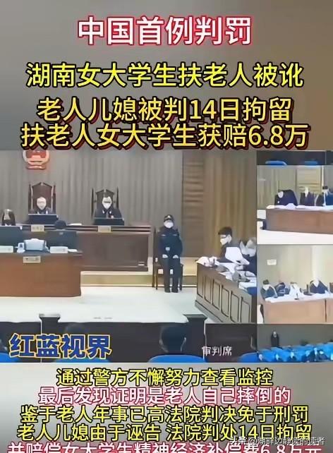 真是太解气了!中国首例“老人讹人被追究刑责”的案子终于尘埃落定。 当年南京彭宇案的一句“不是你撞的为什么扶”,让无数中国人的善良在街头冰冻了整整十几年。 但就在11月27日官媒通报的这起湖南案件中,作恶者不仅一分钱没捞到,反倒倒贴了6.8万元,甚至直接蹲了局子! 事发当天,湖南街头寒风刺骨,一位老人突然重重摔倒在地,疼得脸色煞白,连连哀嚎。 路过的女大学生没有丝毫犹豫,快步上前将老人扶起,还主动垫付1000元医药费,陪同前往医院检查,用行动践行最朴素的善意。 老人及其家属在确认身体无大碍后,当场翻脸,一口咬定是女大学生将其撞倒,张口索要数万元赔偿,态度蛮横且毫无感恩之心。 女大学生百口莫辩,面对无理纠缠与网络谩骂,精神濒临崩溃,多年建立的助人信念在这一刻被狠狠击碎。 警方调取沿街27处公共监控,完整还原老人自行摔倒、学生善意施救的全过程,铁证彻底戳穿讹诈谎言。 老人家属拒不认错,反而恶人先告状,将女大学生告上法庭,试图用诉讼施压逼迫对方妥协赔偿,行为愈发恶劣。 法院审理认定,老人及家属捏造事实、恶意索赔,已构成敲诈勒索与名誉侵权,突破道德与法律双重底线。 主谋家属被依法处以14日行政拘留,同时判决向女大学生返还垫付医药费,并赔偿精神损失等共计6.8万元,一分不少全额执行。 这是国内首次对讹人行为追究明确刑责与高额民事赔偿,一改过往和稀泥式处理,用司法刚性守护见义勇为者。 彭宇案之后,街头摔倒无人敢扶成为社会痛点,善良被算计、好心被辜负,让见义勇为变成高风险行为。 多地调研显示,超八成民众表示遇到老人摔倒会犹豫是否施救,道德冷漠背后,是对被讹诈的深层恐惧。 《民法典》好人条款明确规定,自愿实施紧急救助行为造成受助人损害的,救助人不承担民事责任,为善意提供法律靠山。 此前同类事件多以调解结案,讹人者零成本获利,助长歪风邪气,让老实人不断吃亏,正义长期缺位。 此次判决传递清晰信号:法律绝不纵容恶意讹诈,善良不必再小心翼翼,助人者无需自证清白。 案件发酵后,网友纷纷点赞叫好,街头求助的求助者主动声明“我不讹人”,社会信任正在逐步回暖。 司法公正为善良撑腰,才能让见义勇为不再稀缺,让人与人之间的温暖重回街头,重塑社会道德底气。 扶起老人被讹 扶起老人反被讹 老人赔偿案 麻烦看官老爷们右上角点击一下“关注”,既方便您进行讨论和分享,又能给您带来不一样的参与感,感谢您的支持! 各位读者你们怎么看?欢迎在评论区讨论。