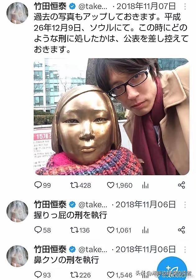 竹田恒泰,根本不配称人 2018 年 11 月,日本右翼分子竹田恒泰在社交平台发布一系列恶俗推文:先晒出与首尔慰安妇少女像的合影,阴阳怪气地说 “暂不公开当时对铜像施了什么刑”,紧接着又连发两条,宣称对雕像执行了 “挖鼻孔之刑”“抓屁股之刑”,用最下流龌龊的语言,公然亵渎纪念二战慰安妇的铜像。 二战期间,超过40万亚洲女性被日军强征为慰安妇,其中中国受害者超20万,无数女性遭受非人折磨,一生都活在创伤之中。 慰安妇少女像不是普通雕塑,它是战争受害者的尊严象征,是对历史苦难的铭记,更是对人类文明底线的郑重守护。 竹田恒泰用低俗猥琐的言语侮辱纪念雕像,本质上是在践踏数十万受害女性的亡魂,是对全亚洲受难者的二次伤害。 日本右翼长期否认侵略历史、美化战争罪行,竹田恒泰的言行,正是这种扭曲历史观最丑陋、最无底线的集中体现。 韩国民众得知此事后怒不可遏,大量网民涌入其社交账号怒斥,民间团体公开谴责这种突破人类道德底线的恶劣行为。 日本国内少数有良知的学者与媒体也发声批评,指出这种行为不仅伤害邻国感情,更让日本在国际社会颜面尽失。 历史不容调侃,苦难不容亵渎,任何对战争受害者的嘲讽与侮辱,都是对人类良知的背叛,对文明秩序的公然挑衅。 竹田恒泰出身日本政治世家,却毫无基本教养与历史敬畏,靠着哗众取宠、侮辱历史博取眼球,尽显卑劣与无知。 中国、韩国、菲律宾等慰安妇受害国,多次要求日本正视历史、道歉赔偿,日本右翼却一再挑衅,毫无悔改之意。 全球多个城市都设立了慰安妇纪念像,目的就是提醒世人铭记战争罪恶,防止历史悲剧重演,守护来之不易的和平。 竹田恒泰的龌龊言行,暴露的不只是个人道德败坏,更是日本右翼势力根深蒂固的历史虚无主义与傲慢狂妄。 一个不敢正视历史、不尊重受害者的民族,永远无法真正赢得国际社会的尊重,更无法真正走向成熟与文明。 铭记历史不是延续仇恨,而是为了守护正义、捍卫良知、防止战争再次降临,这是任何国家都不能逾越的文明底线。 竹田恒泰之流的跳梁行径,只会让世界更加看清日本右翼的真面目,也更加坚定亚洲人民铭记历史、捍卫和平的决心。 杉田明彦 日本极右势力 柴田义之 田中义久 麻烦看官老爷们右上角点击一下“关注”,既方便您进行讨论和分享,又能给您带来不一样的参与感,感谢您的支持! 各位读者你们怎么看?欢迎在评论区讨论。