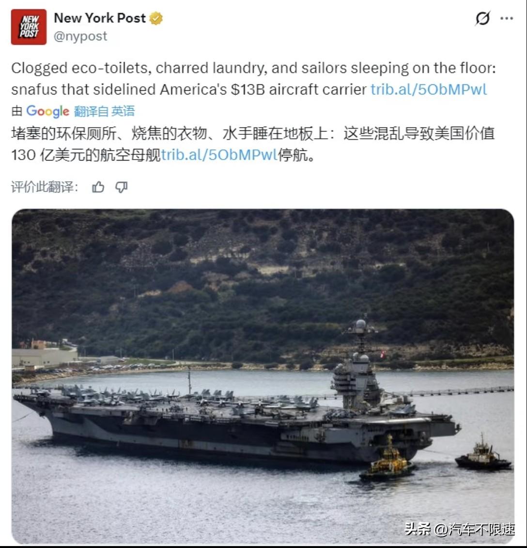 大漂亮这是妥妥拿到了大清的剧本,难道结局真像被写好的剧本一样早已注定? 对于这艘堪称有史以来最大战舰的“福特”号航空母舰来说,这周简直是倒霉透顶,就像一个人出门接二连三被“雷”劈。它的洗衣设施燃起大火,马桶还长期堵塞,这些状况让价值 130 亿美元的“福特”号直接没法参与和波斯的战斗,而且这航母估计得停航一年,就像一个受伤的战士得在床上躺好久才能恢复。 腐朽的封建制度无法承载近代化军事改革的必然结果。它用鲜血证明,没有制度革新,单靠引进“坚船利炮”,终究是空中楼阁,不堪一击。 福特号航母编队 福特号航母故障 超级大航母 美国大美丽 美国大美丽法案 大漂亮内战 美国大漂亮法案