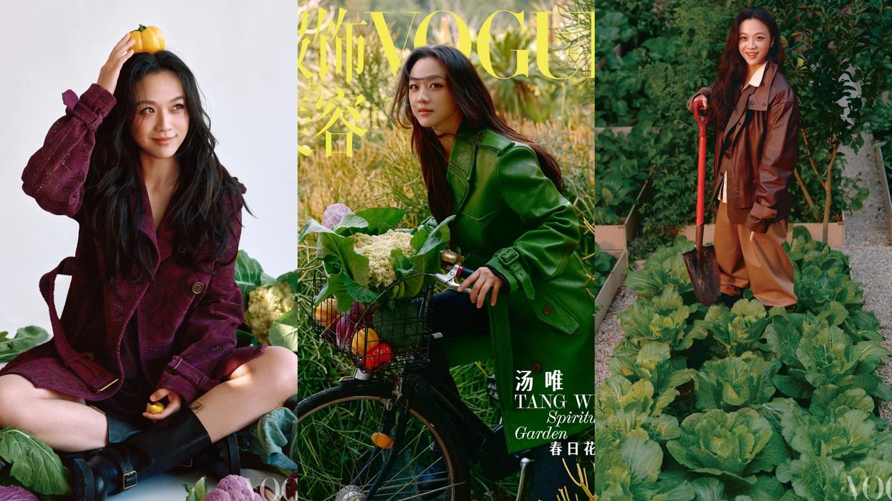 汤唯啊,真的太个性了。人家拍春季封面,什么衣服奇怪,颜色艳丽,穿什么。 她把自己捂得严严实实,就三件风衣搞定,她说自己在北京家里也有蔬菜园。 她不愿意晒自己的生活,菜园子没晒过,但是里面种了很多蔬菜水果。 她不像苗苗那样,把家里的园子晒出来,不喜欢晒,不等于没有。 这就是汤唯,不一样的烟花。