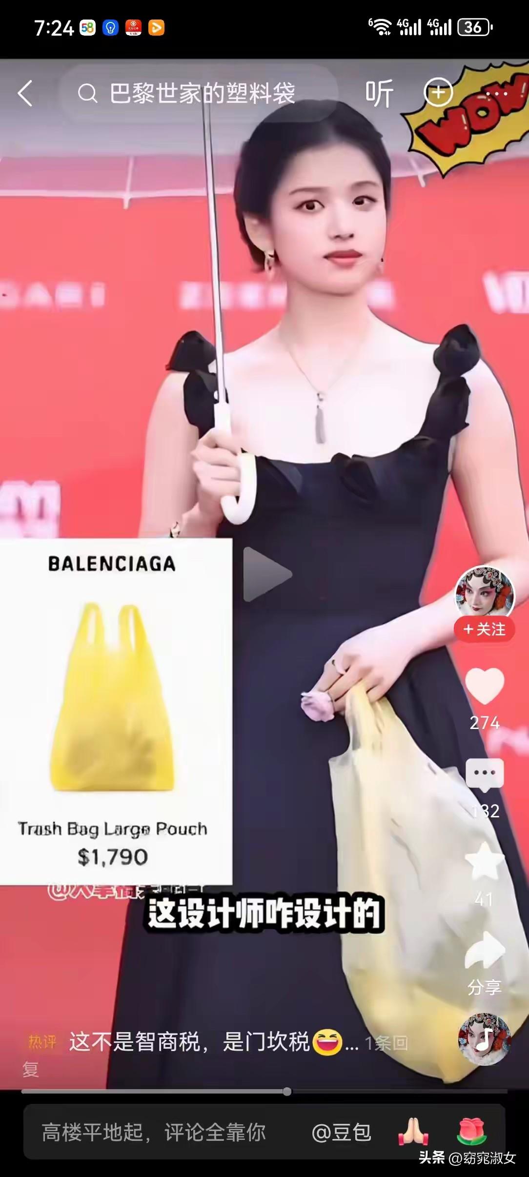 什么巴黎世家,不就一个破垃圾袋吗,大街上随处可见一抓一大把,这是把有钱人当日本人整啊,我这个普通老百姓真是欣赏不来一点。 张婧仪拿着塑料袋走红毯,不知道的还以为是去吃席打包剩菜剩饭的呢[笑哭][笑哭][笑哭]巴黎世家奢饰品 巴黎包包 巴黎世家塑料袋 [笑哭]