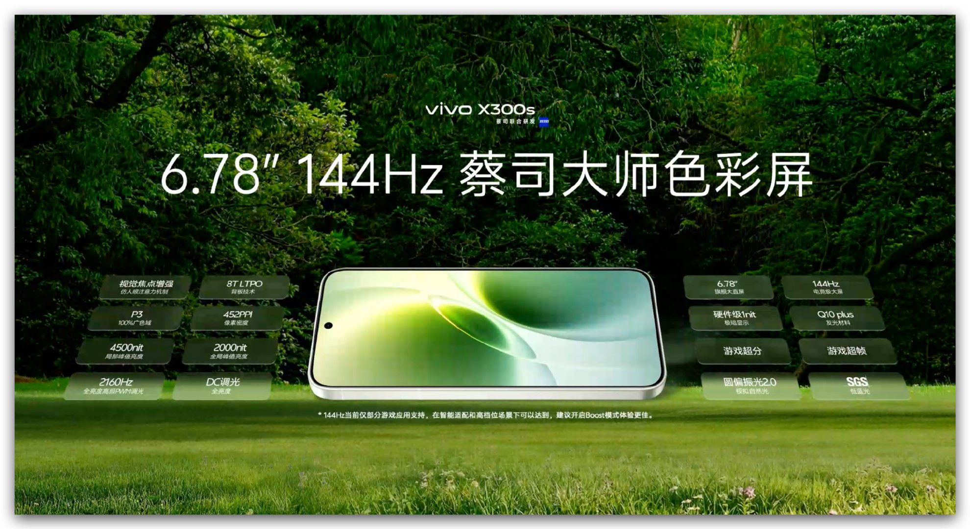 6.78英寸大直屏,支持最高144Hz的高刷,iQOO 的Monster引擎也被带到了X300s上了,还拥有两颗大师1511扬声器、超感定制振动马达。