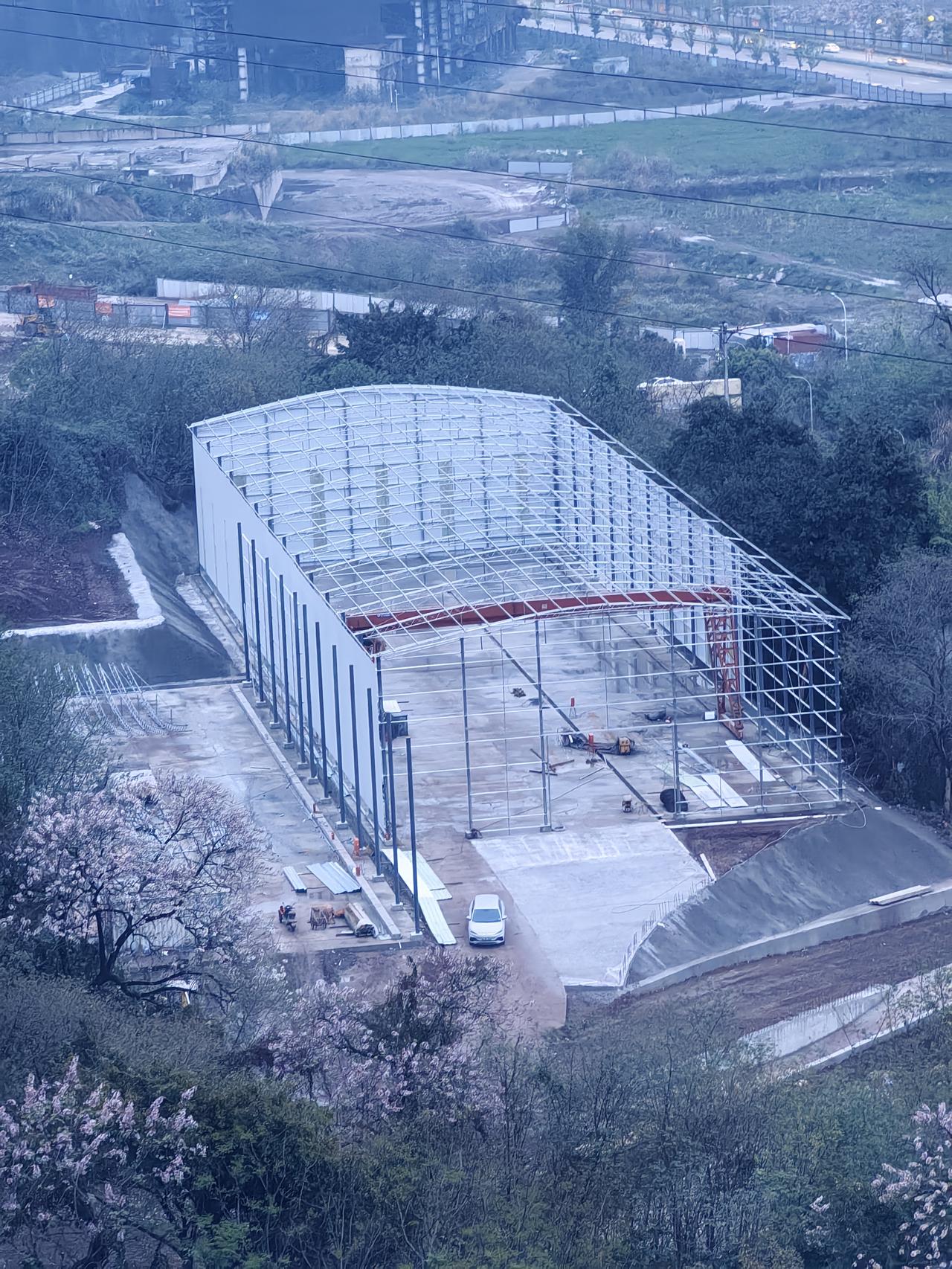 在崖线之上,观察老重钢片区…突然发现有一个新的结构棚正在搭建[思考]这是要干嘛呢?施工工棚?看着也不太像啊[what]