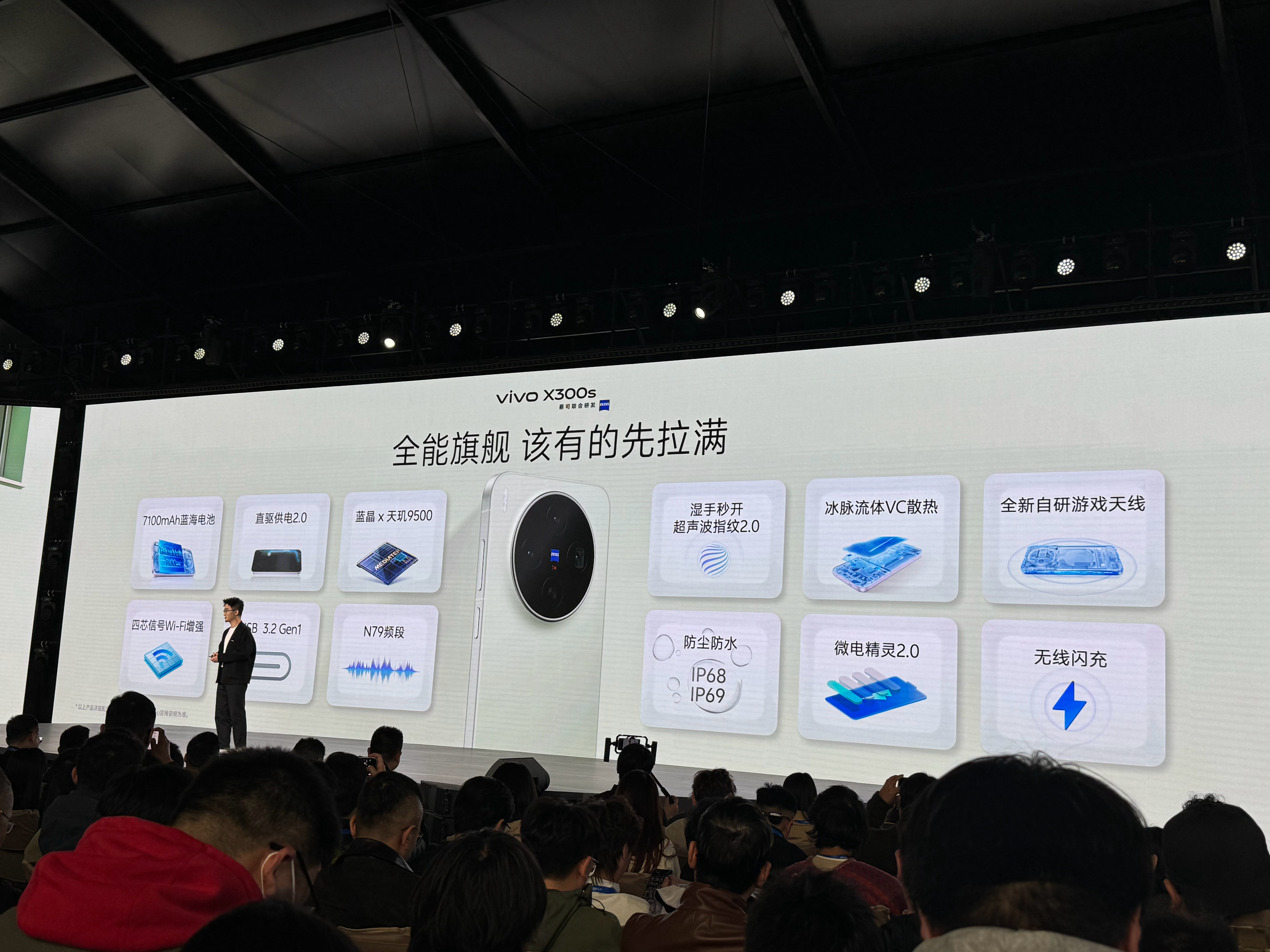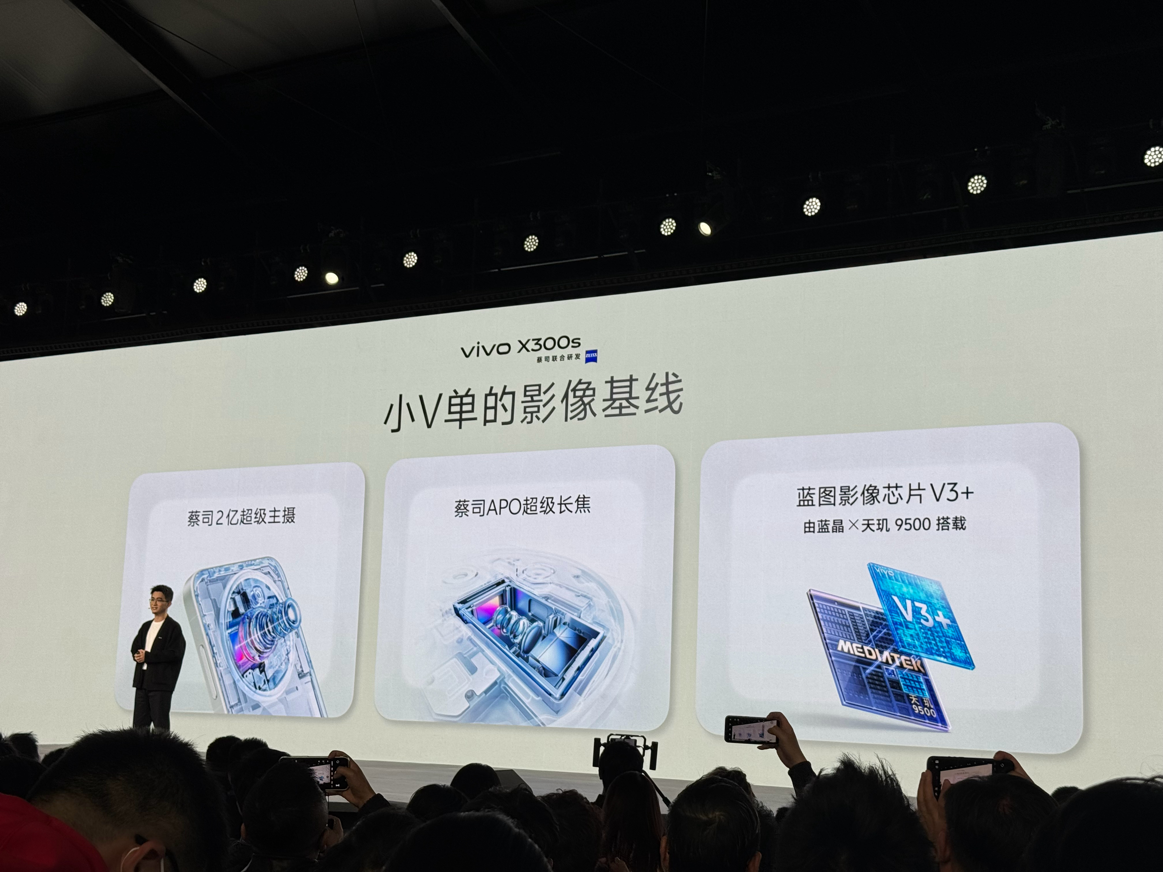 vivo X300s采用6.78英寸144Hz电竞级直屏,顶配战鼓大师对称双扬Pro,两颗1511扬声器,定制超感振动马达,配备蔡司2亿超级主摄、蔡司APO超级长焦,搭载蓝图影像芯片V3+…搭载蓝晶×天玑9500芯片平台与iQOO旗舰同款Monster超核引擎,7100mAh蓝海电池…vivo X300s超能小V单