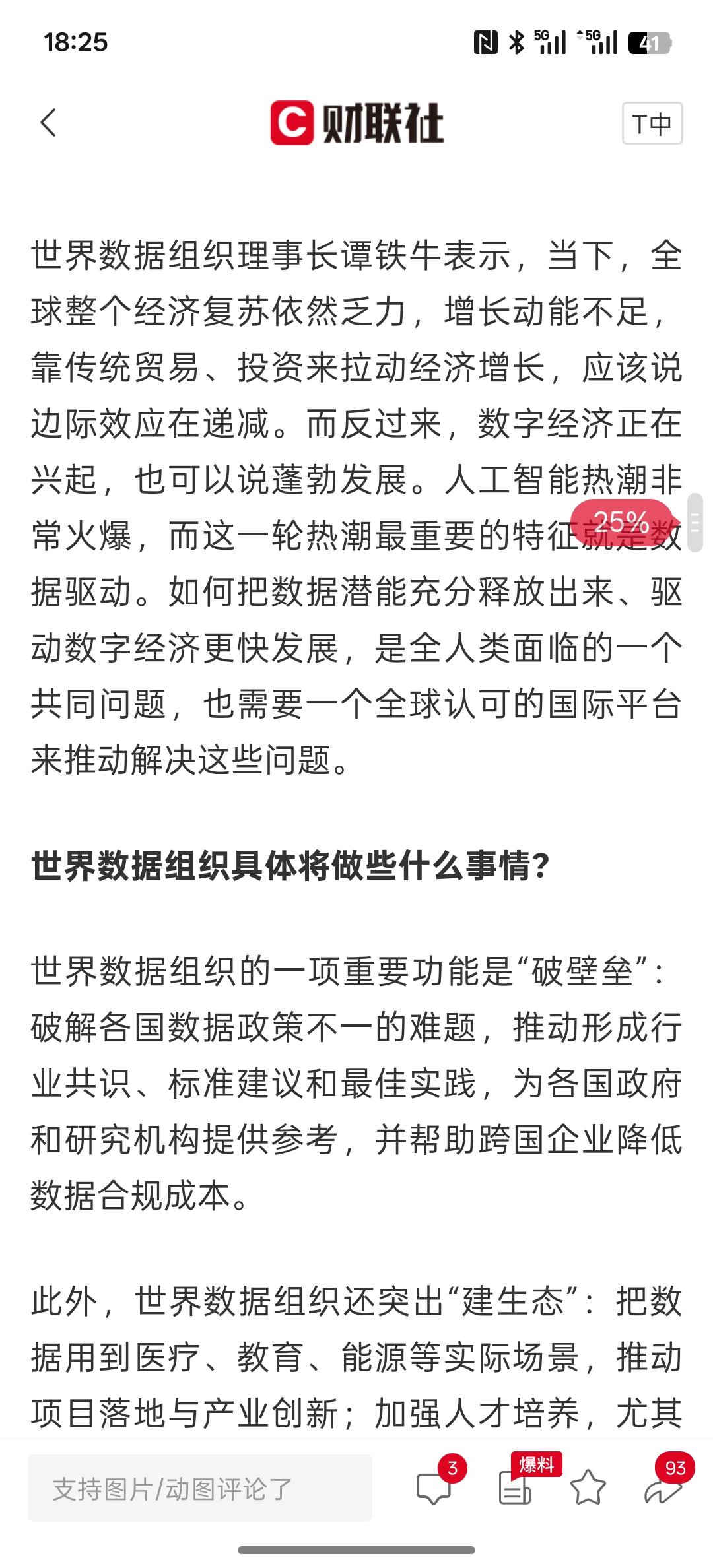 这个就直接利好算力与数据中心,世界数据组织在北京正式成立 已汇集会员超200个,随着中国AI人工智能的快速发展以及算力的布局,世界数字组织在北京正式成立,证明数字经济快速的发展,人工智能的发展度越来越成熟,那么未来数字经济,将继续推动世界经济的发展! 人工智能的发展,未来需要更多的数据与算力来支撑。不管是从软硬件方面都是需要,尤其是企业开展应用场景落地,需要数据管理以及算力中心来支撑发展!这也为未来跨国企业在数据合规的情况下,避免成本大幅增加!