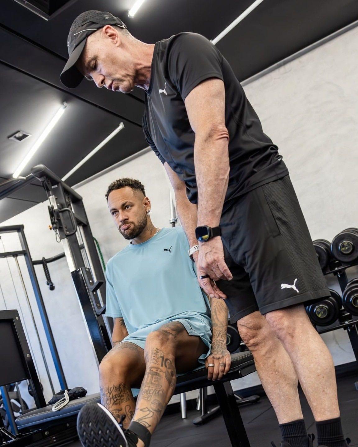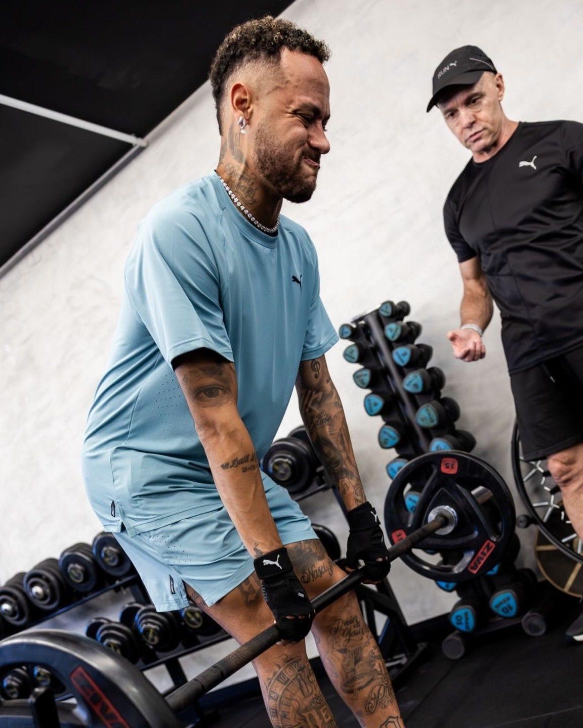 桑托斯全队球员短暂休假,内马尔 为了冲击世界杯,在私人的家庭训练室里,刻苦训练着,强身健体。 眼神里写满了对2026年美加墨世界杯的渴望。 加油!内马尔! 加油!巴西 🇧🇷!