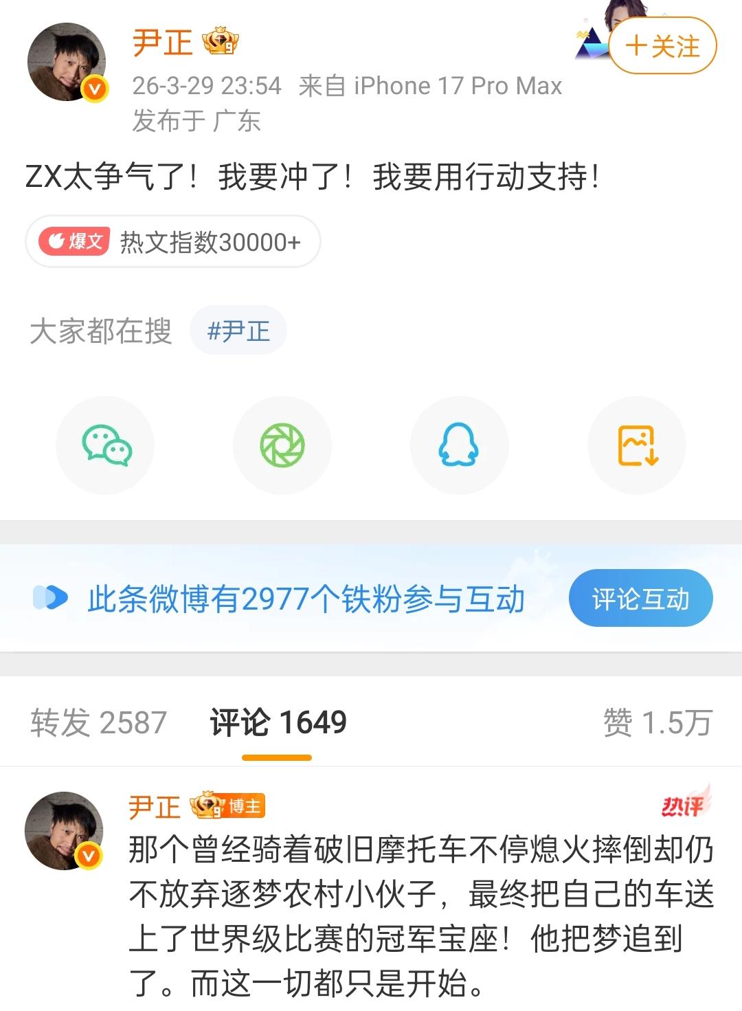 国产摩托扬威世界赛场, 尹正这波硬气拒绝太圈粉! 张雪机车820RR在WSBK葡萄牙站拿下双冠, 直接打破欧美日百年垄断, 这波中国智造的逆袭看得人热血沸腾,而尹正和张雪的双向奔赴, 更让这场胜利多了份惺惺相惜的温情。作为演艺圈少有的职业签约车手, 尹正为冠军车型发声要全款支持, 张雪诚意赠车还邀真实测评, 这份坦荡和信任本就难得, 尹正一句“自己买”更是戳中人心, 这不是客气, 是对追梦人最尊重的支持, 也是对国产实力的绝对认可。 有人说尹正和张雪像, 建议拍电影, 我倒觉得这份相似不止于颜值, 更是刻在骨子里的对热爱的执着, 一个把摩托梦骑上世界领奖台, 一个把赛车魂融进演艺路, 同频的人总会相互吸引。 张雪机车的崛起告诉我们, 国产智造从不是口号, 而是一步一个脚印的硬实力, 而这份被看见、被尊重的热爱, 才是最动人的模样。 你觉得尹正演张雪的追梦故事, 是不是氛围感拉满了?