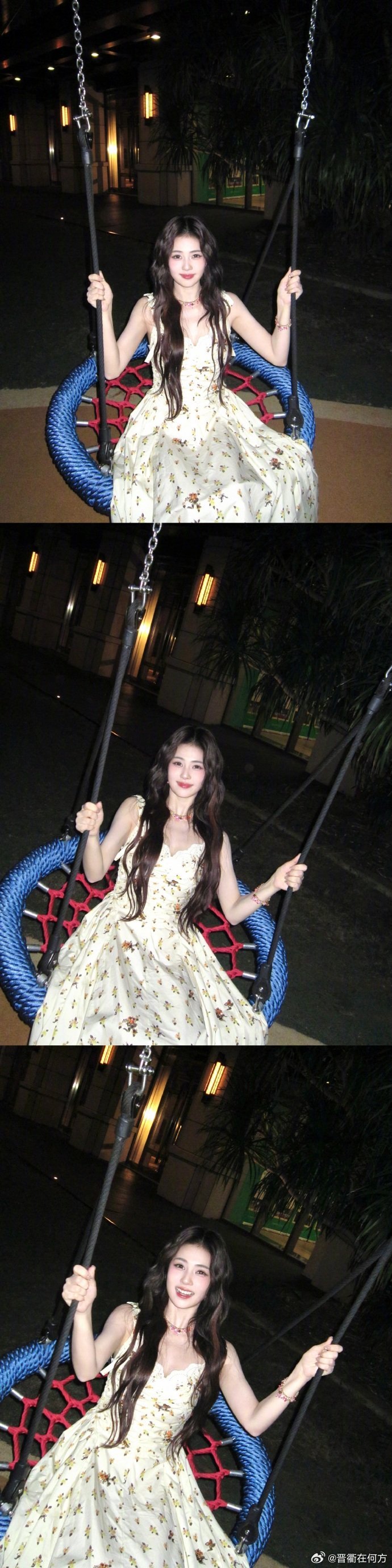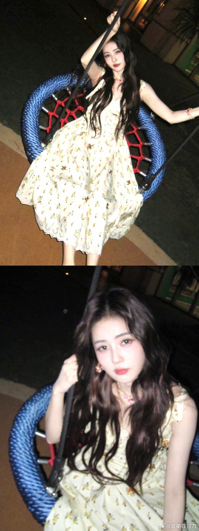 白鹿碎花裙元气随拍 抱着椰子,荡着秋千吹晚风,这才是春天该有的样子~的碎花裙造型也太甜了吧!白鹿 打卡衢州