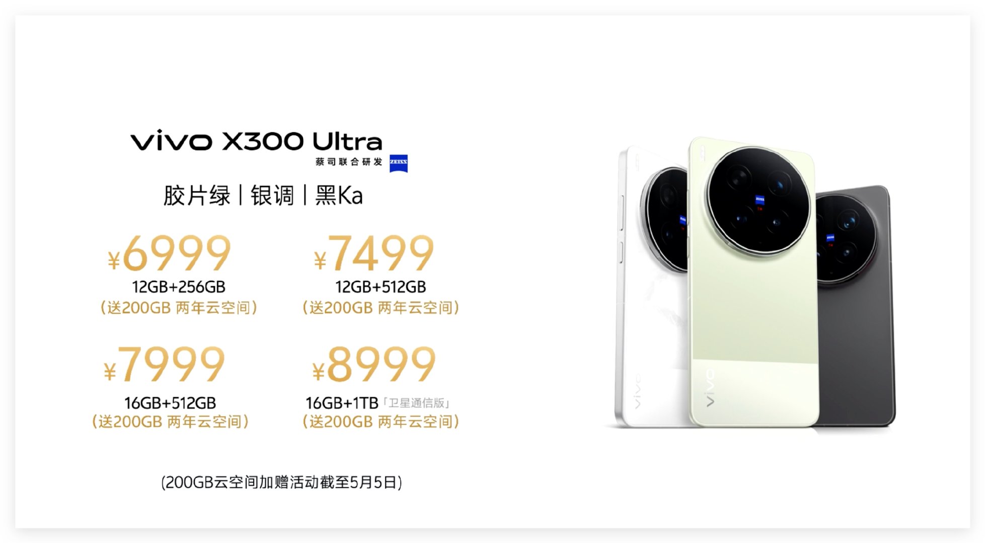 vivo X300 Ultra价格来咯:12+256 6999元;12+512 7499元;16+512 7999元;16+1TB 8999元;大家觉得这个价格怎么样
