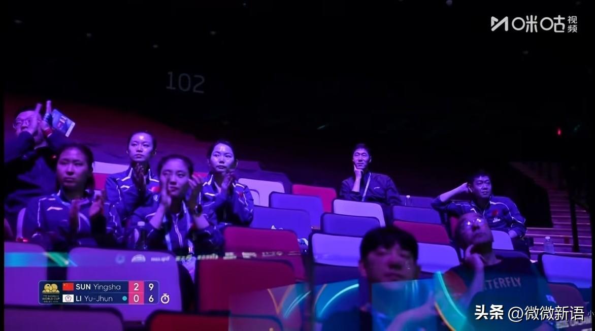 莎莎一上场,先用鞋子蹭蹭地胶滑不滑,她肯定也看到今天考夫蔓打比赛时候被滑倒了,所以上场的时候先试试地胶滑不滑,也是很细心的女孩子啊,莎莎在那里转了一圈,看起来是不滑的。 今晚莎莎的比赛,场外是马琳,局间马琳和莎莎交流的也多,莎莎说对手的球很转,李昱谆和教练说莎莎的球太转了,超级霹雳转,莎莎还是太厉害了。莎莎在小组赛首轮比赛是3-0赢了李昱谆,后天莎莎要对阵梅谢芙,莎莎继续加油哦。 今晚王励勤也一直在现场观赛了,看到女队陪练是来了何卓佳、朱梓予、徐奕、韩菲儿,翔哥也在看台观赛,看到邱导也坐在那里看比赛,松弛感满满,白天莎莎训练的时候邱导都跟赛,就是现在每次比赛莎莎的场外都是马琳,邱导不给别人做场外的时候,他都会在现场看莎莎的比赛,也是一直陪着莎莎的。 国乒女队今天是打了五场比赛,五场都赢了,明天国乒一共有四场比赛,女单只有覃予萱对考夫蔓,但是考夫蔓今天受伤了,明天不知道能不能正常参赛,如果不能打比赛,那覃予萱就要等后天和早田希娜的比赛了。