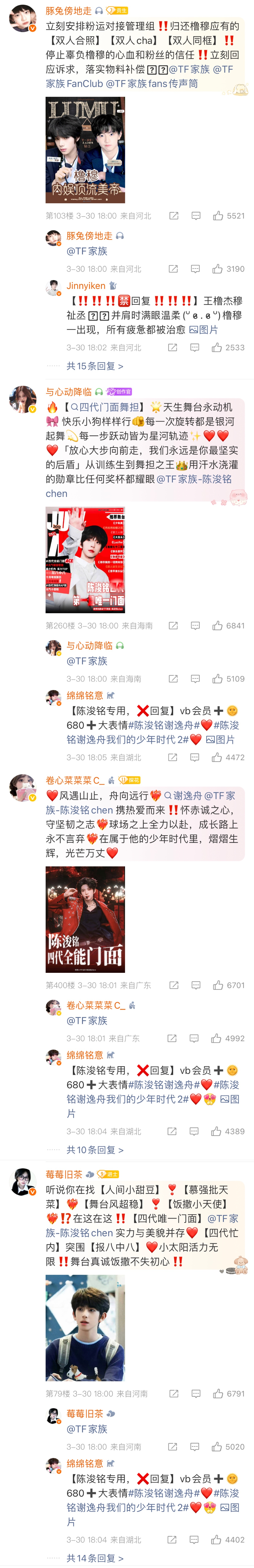 四代官博空瓶top3:橹穆、王橹杰、陈浚铭