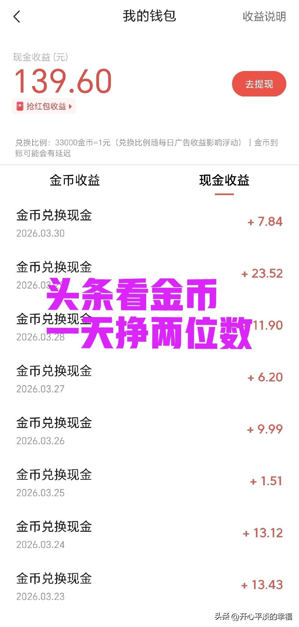 👍🏻分享头条刷金币一天挣两位数的收益法 头条刷金币一天挣两位数?是的,我做到了。刷金币一天整个5块钱都不错了,但是我的头条金币太多了,有一天刷了100多万,最多时能兑换40多块钱。给大家看看收益,看看下图。这不是P的,这是我的真实收益。 有人问我你的金币为啥那么多?是不是因为你写头条?我说金币和写头条没关,我现在不写头条了,金币都是好几千。我不在头条极速版,我是在头条。 我觉得我的金币多,可能是头条识别到我不是纯粹为了开宝箱而刷广告视频,而是真心地在浏览商品,去关注自己需要的东西,科技时代,就算AI也要讲真诚[笑哭] 再一个我买东西都是在头条,只要下了单,金币都会涨到4500。有时不下单,但看到喜欢的也会点进直播间看一会,然后退出继续刷金币,平台识别到你留意这件商品,但没有下单,下个视频就会给你出个满减优惠券,我昨天刷到素颜霜,刷了几次没买,平台最后弹出满100件50,也就是2支200元的素颜霜,149就可以买到了,你能不下单吗?看到明明卖苹果干你能不下单吗?看到汉森吃酸辣粉你能不下单吗?就这样你的金币就会一直保持在较多水平。不写头条,在头条刷金币也能一天挣上2位数😄😄