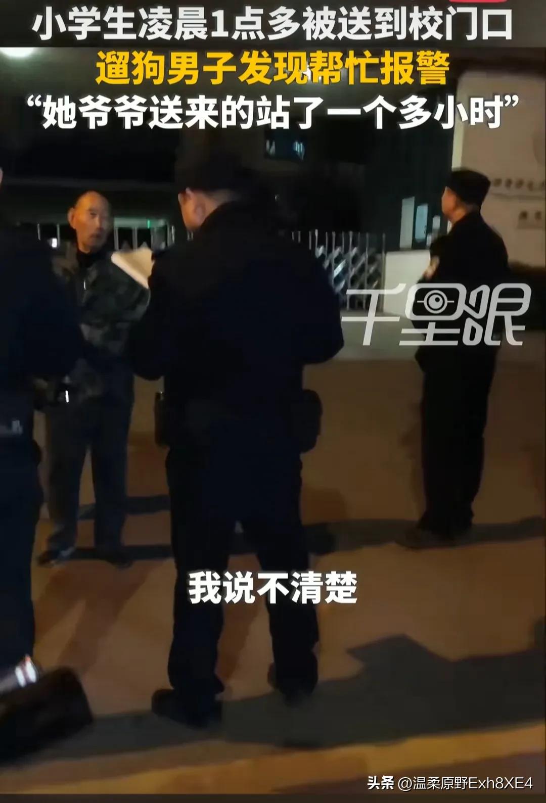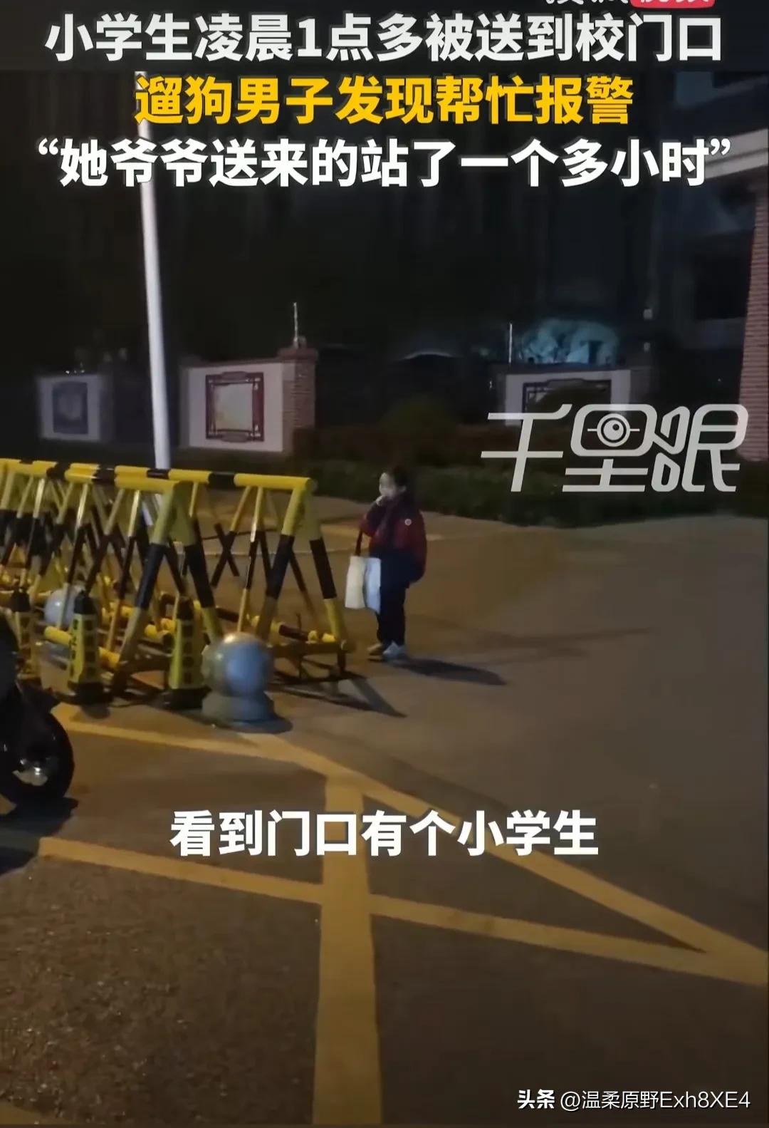 “也是幸运,碰巧三代都是狠人!”河南洛阳,一名男子半夜三点多去遛狗,突然发现一个小女生仅拎着个文具袋站在小校门口。上前询问后,不禁觉得这女娃也太可怜了。网友:一点半上学😅,三点遛狗🙃,都好可怜[捂脸] 3月30日凌晨3点多,家里的狗子太闹腾了,男子想着还是出去遛一趟吧。可谁知走到一小学门口,看到一个小女娃孤零零地站在那儿, 周围什么人都没有!于是男子担心上前询问,女娃却说,自己已在这站很久了,是80多岁的爷爷送自己来上学的。 看着孩子冻得直缩身子,男子赶紧联系了女娃爷爷,可80多岁的老人沟通起来都困难。无奈,男子报警求助,才最终将孩子安全护送回家。 有网友说,80多岁的老人,自己都需要人照顾,还送娃上学[what]?老人会不会是老年痴呆,分不清早晚时间了! 还有网友说,感觉小学生这样真的特别可怜[泣不成声]!都不知道这是第几次被凌晨送过来了,要不是这人报警,她大概真硬站到天亮吧! 又有网友说,当爸妈的直接把娃全甩给高龄老人,真出了事后悔都来不及。 感悟:生而不养不教,长起来的孩子也只会是跟父母一样的人!对孩子上点心吧! 对此,您怎么看?真有这么糊涂爷爷、神经大条的父母吗?