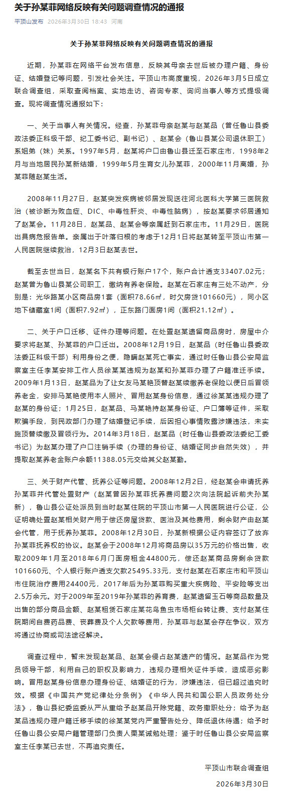 官方通报亡母被伪造身份结婚 这份通报还是比较可信的,细节和证据比较充分,总体来看是家庭内部问题,而且主要还是财产纠纷问题。舅舅和姨等把外甥女抚养成人,最后闹到了这个地步,确实让人唏嘘。而财产的流向比较清晰,可信度比较高。舅舅想贪图便宜冒领养老金,结果被抓住了把柄。斗米仇啊!