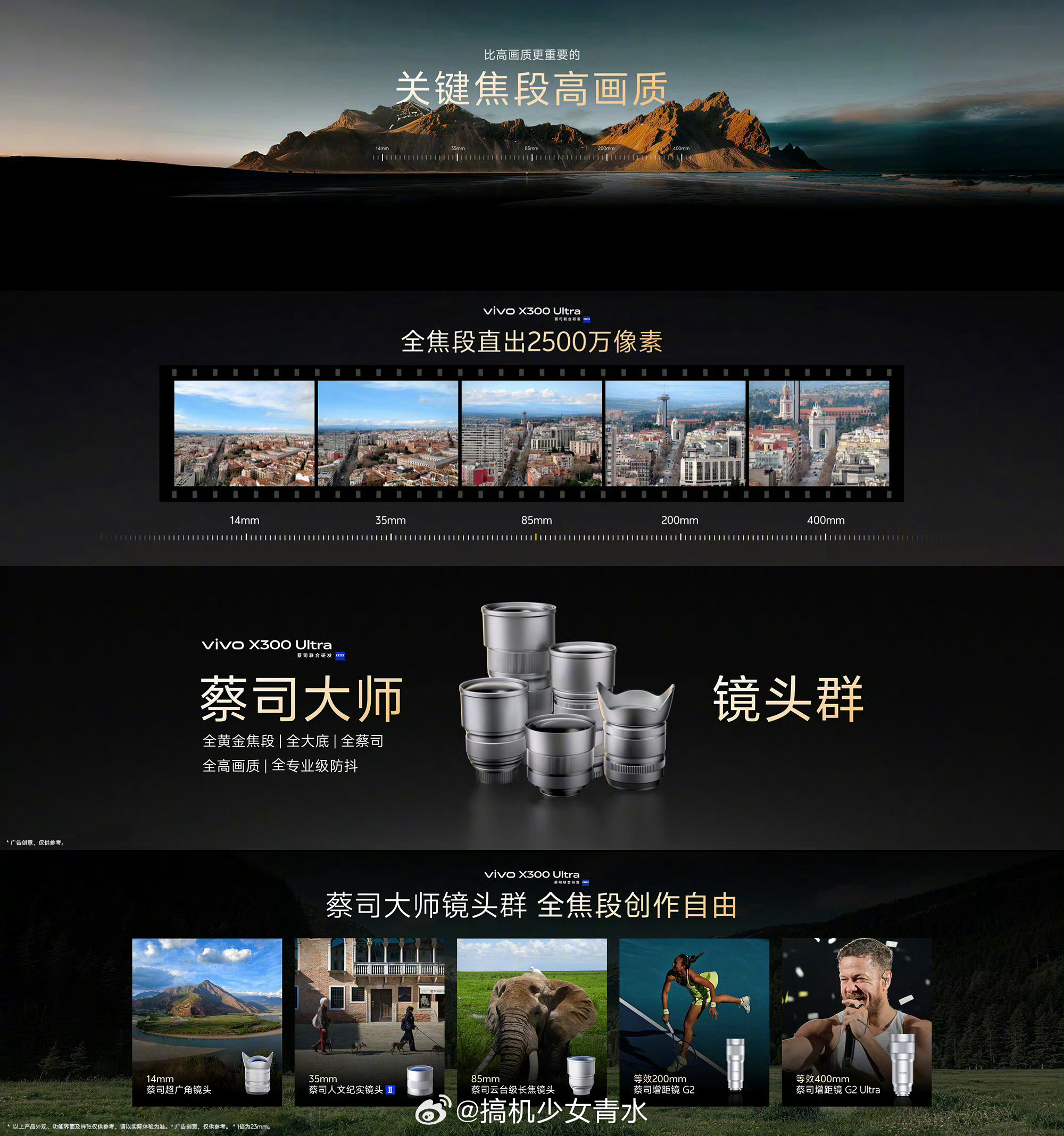 vivo X300 Ultra专业V单vivo X300 Ultra 影像配置一览。很震撼,vivo在做V单这方面真的是认真的而且这次 X300 Ultra 也做了全焦段 25MP 直出,挺好。还加入了独立的一颗原色镜头,拍摄能带来更好的色彩表现了,更真实。