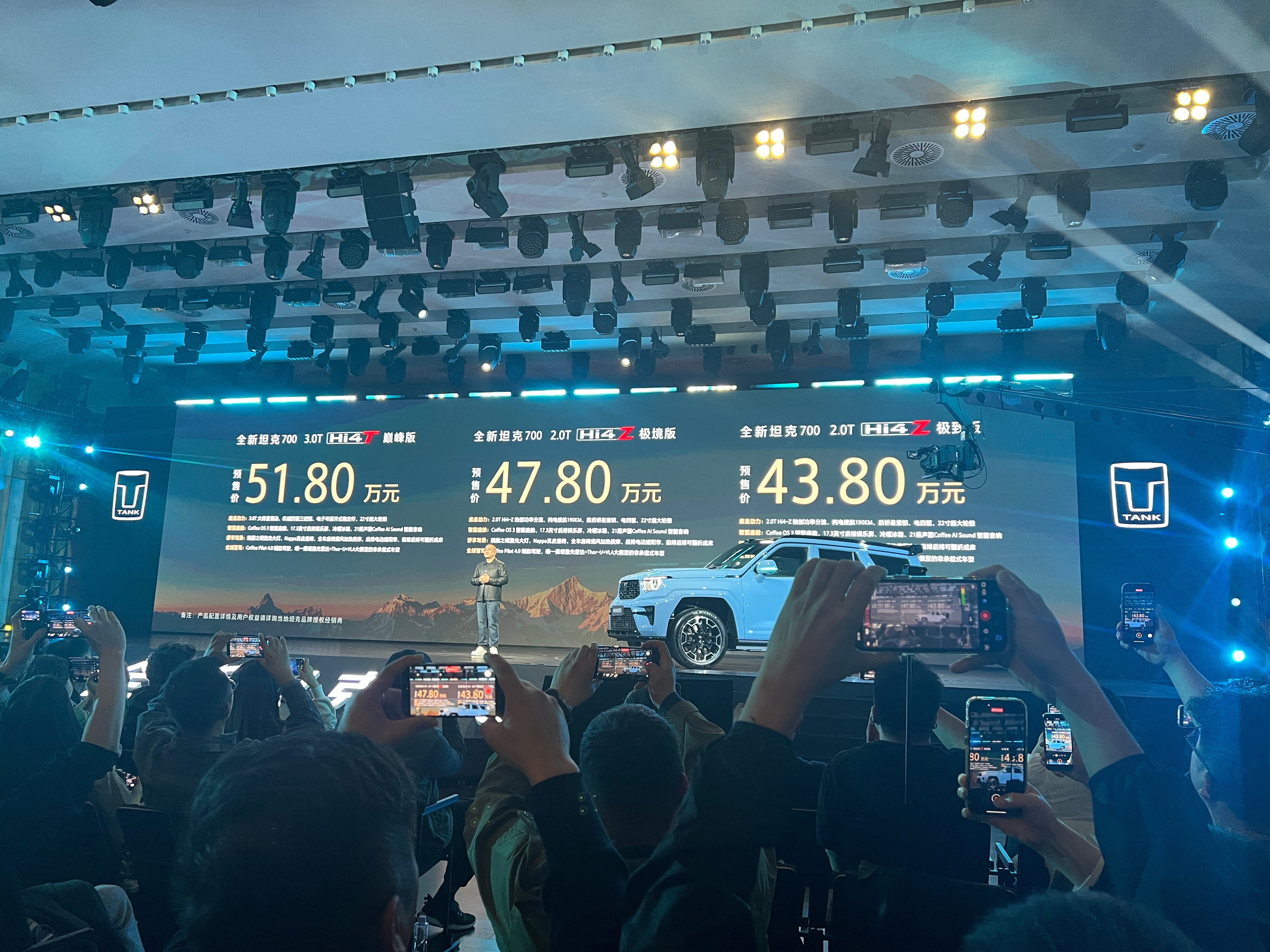 全新坦克700预售43.8万元起刚刚官宣!价格来了:Hi4-Z 极致版:43.8万元Hi4-Z 极境版:47.8万元Hi4-T 巅峰版:51.8万元 这价格,配上3米轴距、麒麟设计、智能驾驶辅助、冰箱彩电大沙发、硬派底子、一览众山小的高坐姿,还有双动力选择…… 如果不是天天去爬石头玩泥巴,坦克T700可以说是目前市场上“泛越野”的实力选手。全新坦克700新时代新旗舰全新坦克700全域豪华suv新旗舰跟着魏建军看懂全新坦克700魏建军的摩登DAY