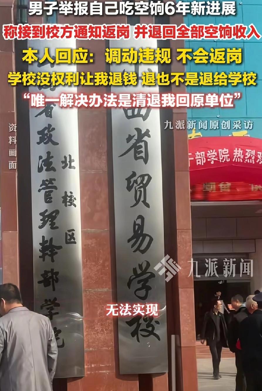 活见久!山西柳姓男老师举报自己吃空饷?!每月8415元工资,白拿了6年多,5万多块钱都不要了,傻子都喜欢钱,一个老师,还是省职校高等学校老师,竟然与钱过不去?只为了不想调到太原29中,要求返岗省贸易学校,事出反常必有妖!到底咋回事?很多疑惑,当初为什么调动?不去上班为什么太原还发工资?如今有为什么主动曝光自己?看后续!