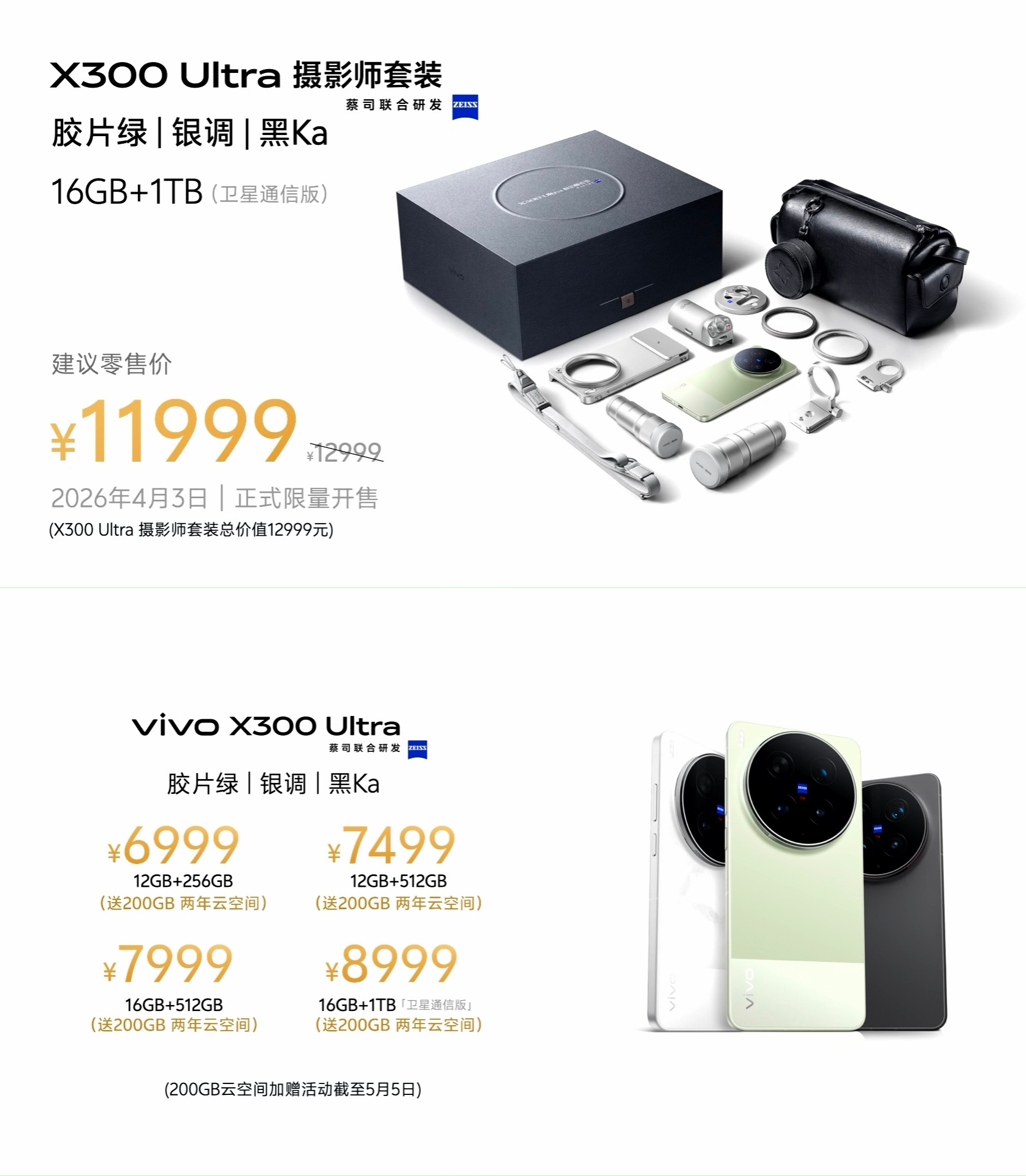vivo X300 Ultra价格来了 6999 起,顶配 8999。