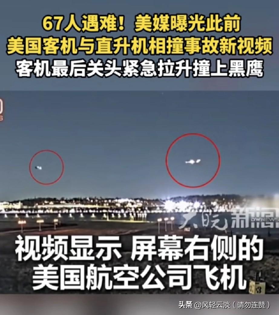 3月30日,美国CBS公开2025年1月29日华盛顿里根机场附近空难完整监控画面。当晚,美航5342号支线客机(64人)与美军黑鹰直升机(3人)在波托马克河上空相撞,67人全部遇难,为美国近20年最严重空难之一。 画面显示:客机进近时紧急拉升避让,仍被黑鹰旋翼削断尾翼,两机失控坠河,夜空被爆炸火光照亮。NTSB调查显示,事故源于直升机违规超高度飞行、空域管理混乱、空管预警滞后等系统性问题。