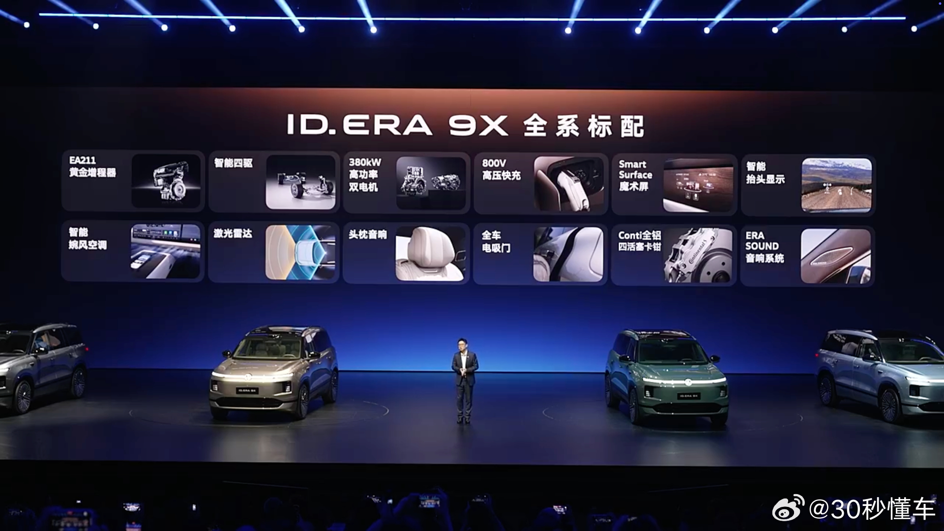 大众9X是增程车的终极答案吗 ID.ERA 9X预售发布会3月30日,上汽大众ID. ERA 9X正式开启预售,32.98万起!说实话,上汽大众这次是真的把“家底”都掏出来了。九大黑科技齐发,EA211黄金增程器、行云智能辅助驾驶、座舱、底盘全拉满。先说增程实力,EA211黄金增程器,业内叫“机皇”,配宁德时代65.2kWh骁遥电池,纯电续航超400km,综合续航1651km,亏电油耗低至6.27L,增程器介入时NVH差异低于0.5分贝,人耳几乎无感。而且实测数据显示,无论极寒低温,还是高原低氧,ID.ERA 9X亏电状态下百公里加速动力衰减最低只有0.18s,几乎没衰减,动力表现全程一致。再看智能辅助驾驶,全球首发搭载Momenta R7强化学习世界模型,物理AI上车,从车位到车位全场景覆盖,水平直接跻身行业第一梯队。座舱也卷出新高度,动态零重力座椅行车也能躺平,Smart Surface魔术屏息屏时隐匿木纹、点亮后光影浮现,二排开门补盲屏拒绝“开门杀”,智能婉风空调告别生硬直吹。以前说大众转型慢,现在看,它只是等一个“满级”出场。德系满级旗舰SUV,3月30日预售开启,预售订金5000元抵10000元、还送价值10000元智能光语踏板+价值8000元高定车漆、首任车主终身质保,大众老车主还可享10000元尾款抵扣,权益政策真的诚意拉满。这价格、这福利政策、再加上这配置,你们觉得值不值?