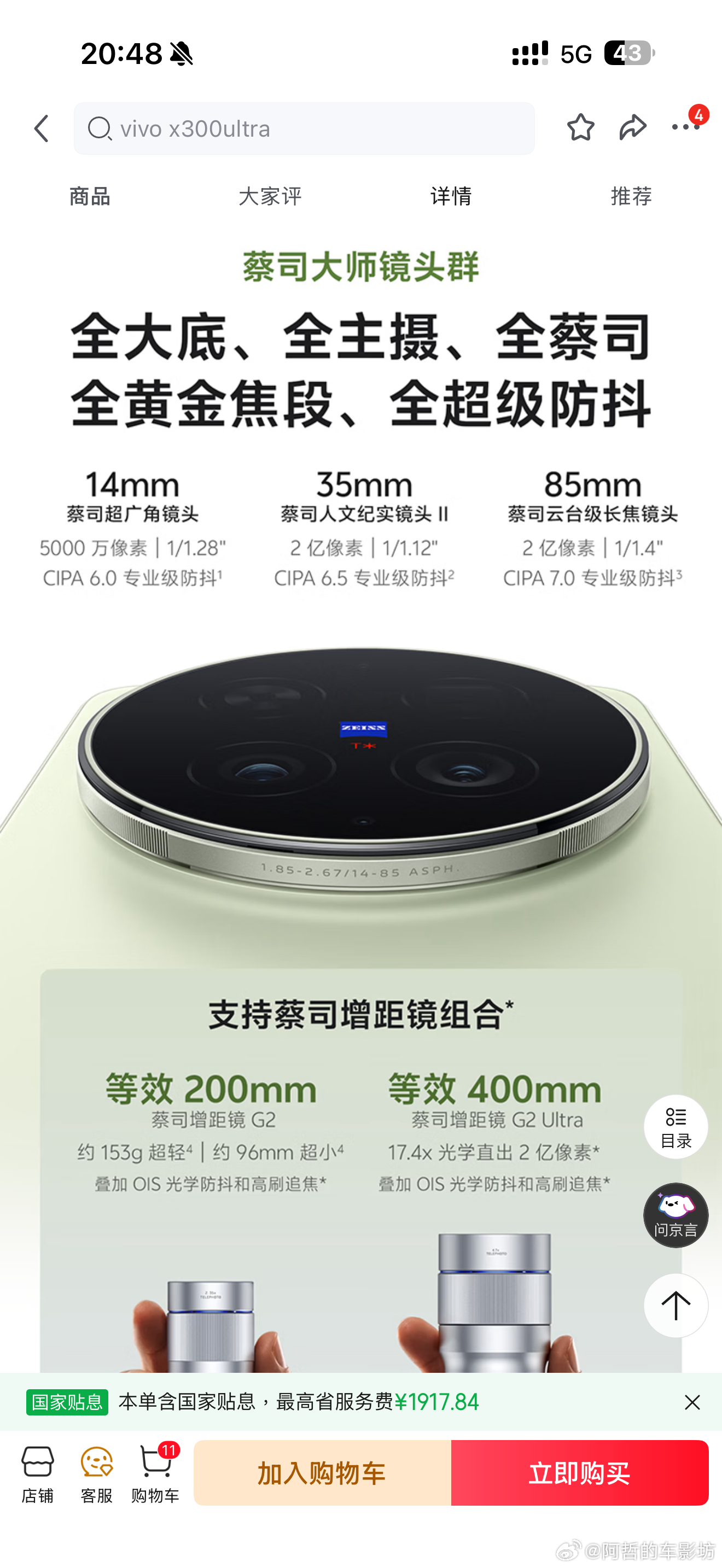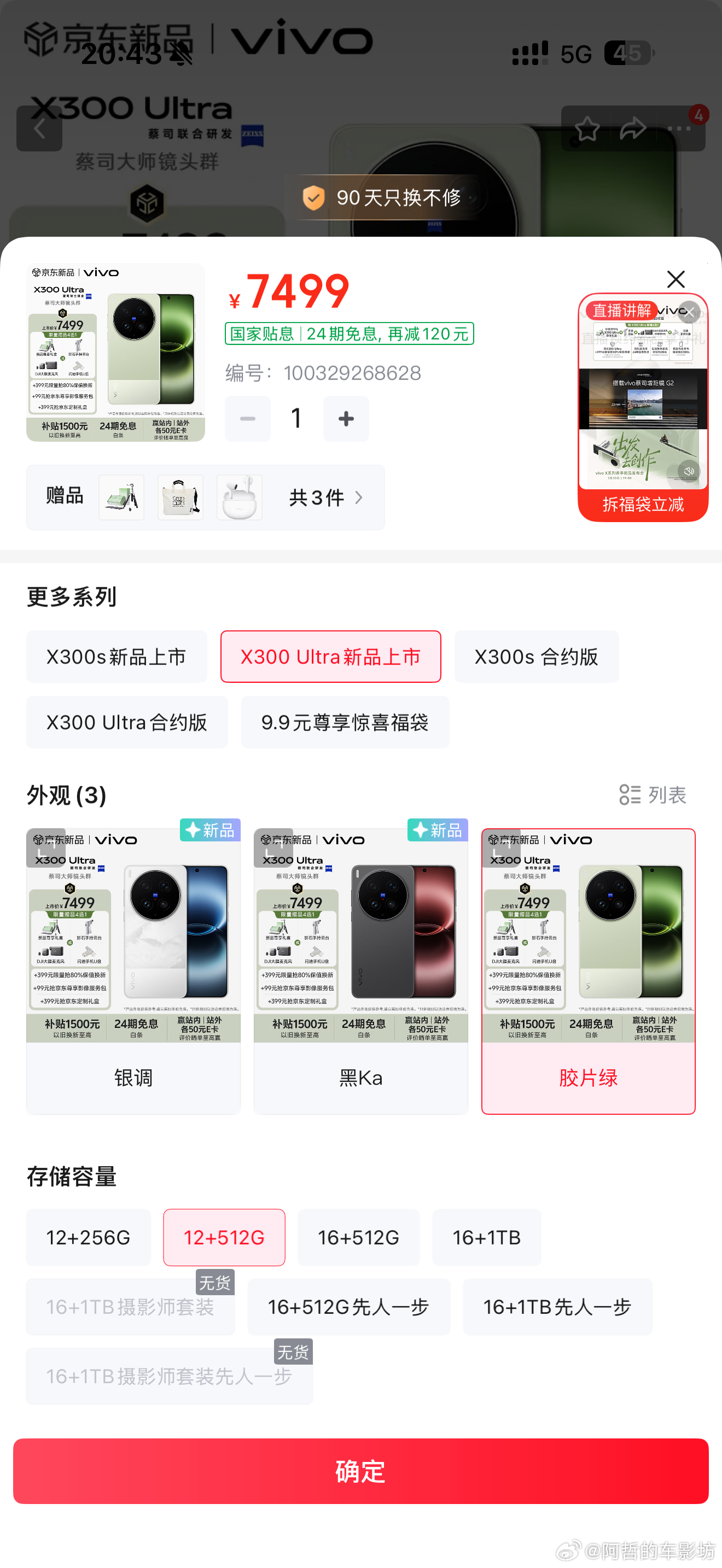 VIVO X300Ultra价格来了12+256GB 6999元12+512GB 7499元16+512GB 7999元16+1TB 8999元