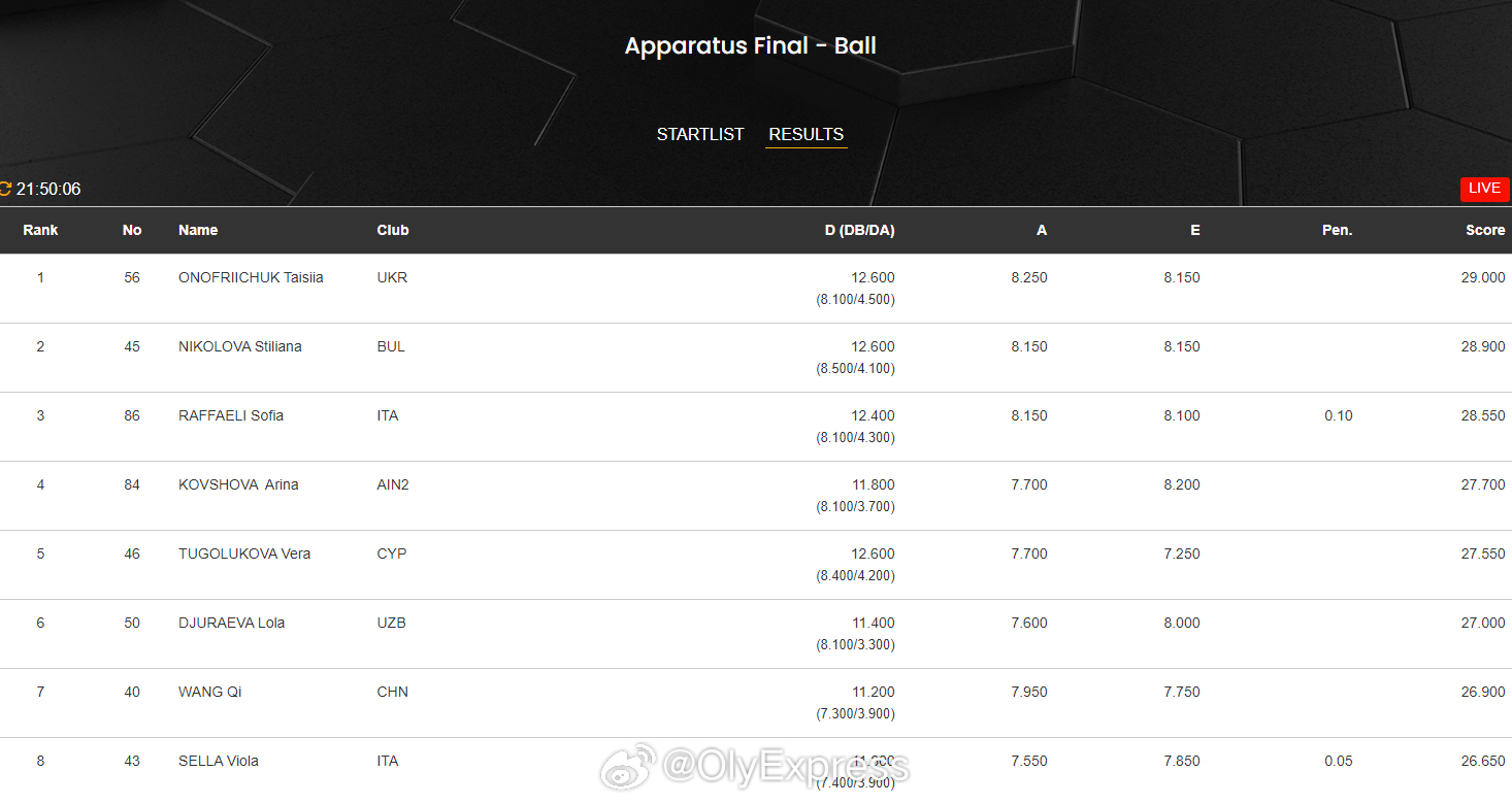 【艺术体操世界杯5球中国力压俄罗斯夺冠】国际体坛战报速递 3月30日索菲亚,艺术体操世界杯保加利亚站结束。在最后一个比赛日中,中国队以27.250分夺得5球金牌,俄罗斯队落后0.050分获得银牌;在3圈2棒比赛中,俄罗斯队以绝对优势夺冠,中国队名列第七。此外,中国选手王淇和王子露分获球操第七和棒操第六。